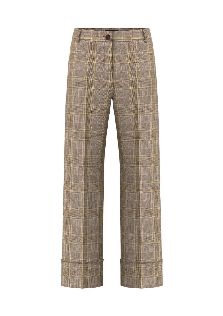 Informal allure and high cuffs: these are the perfect trousers for your days in the city. The pressed pleat construction and French pockets add a tailored touch, perfect for pairing with a soft knit and ballet flats. Trousers in patterned yarn-dyed stretch gabardine, straight fit, exposed button closure, side French pockets. Pressed pleats on the front and back, with cuffs.