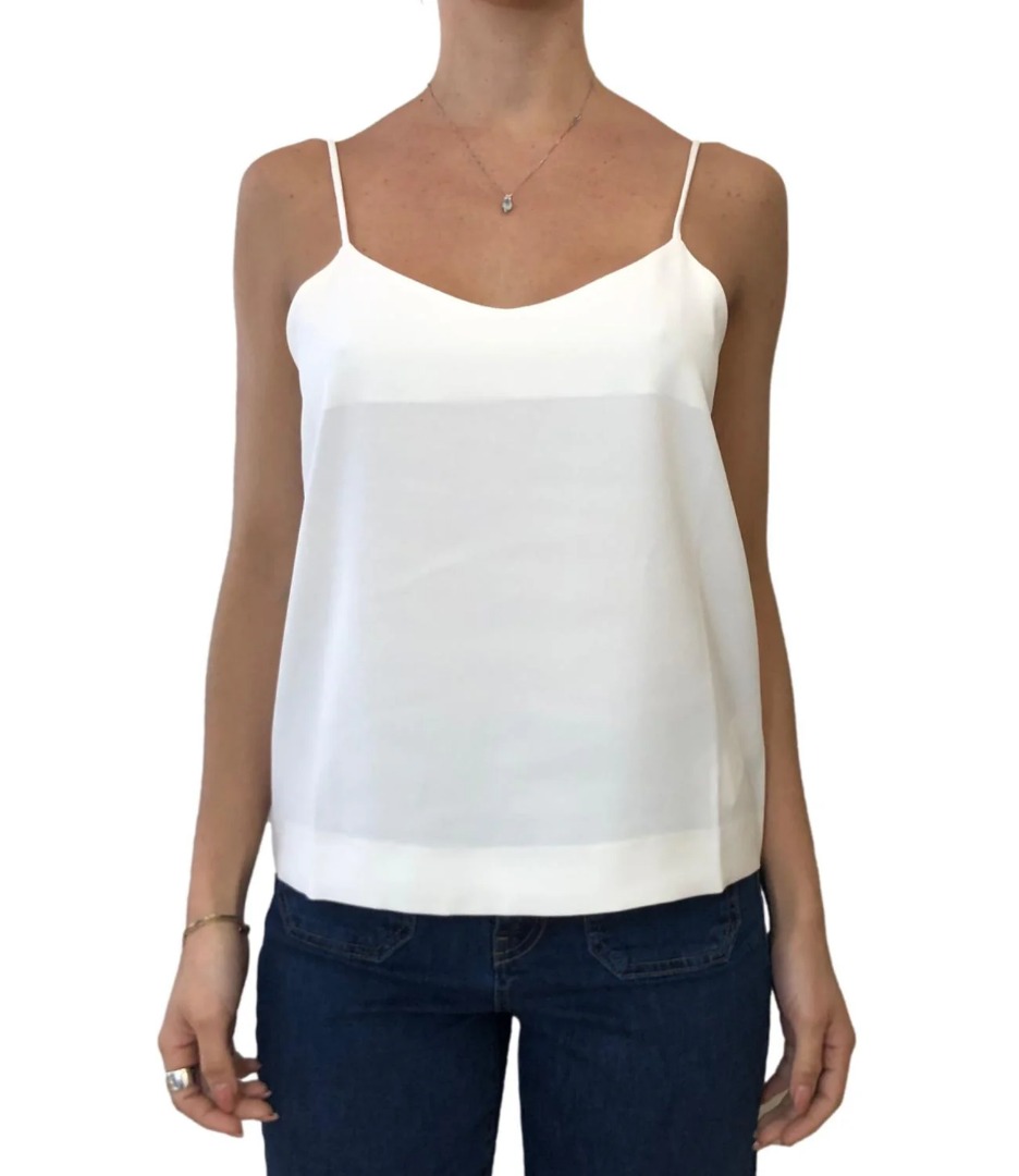 V-neck top with thin straps. Straight line, loose fit.