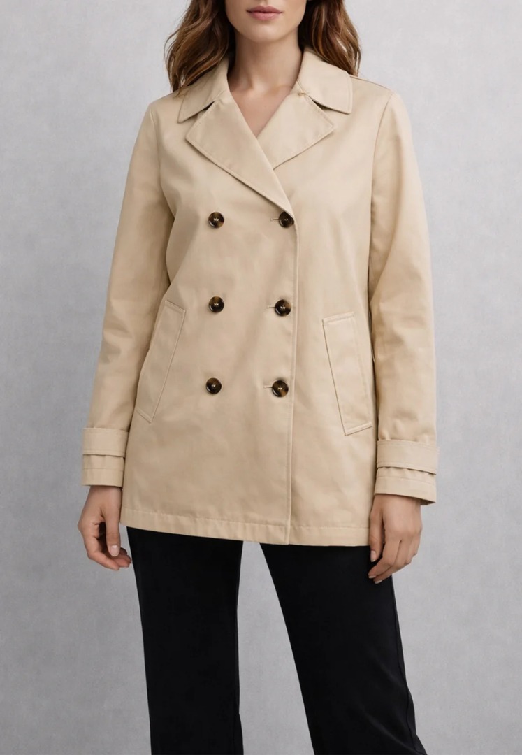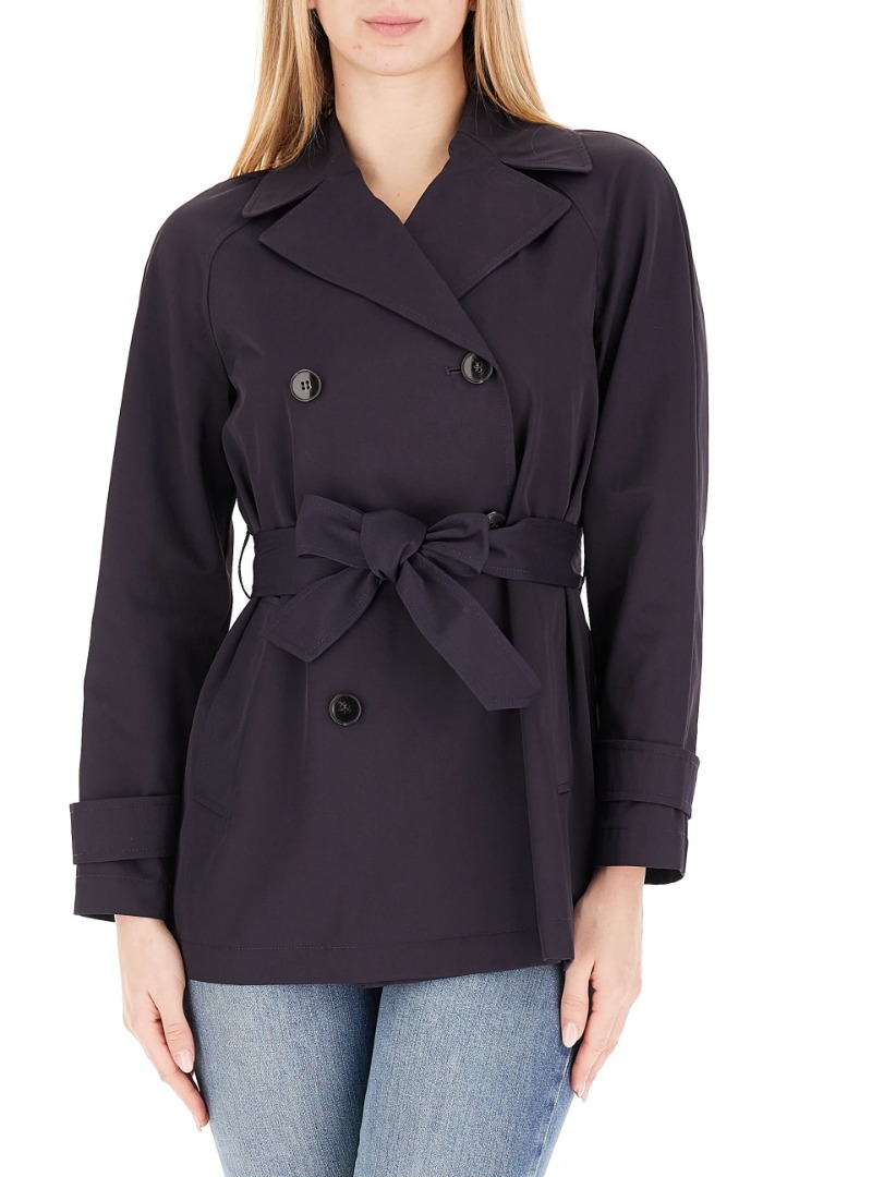 Marella Short Trench Coat. Made from a solid, uninsulated material. Lightweight, extremely durable. Straight fit for freedom of movement. Double-breasted. Uninsulated, unlined. Raglan sleeve design offers greater freedom of movement. Includes a fabric waistband. Two side slit pockets.