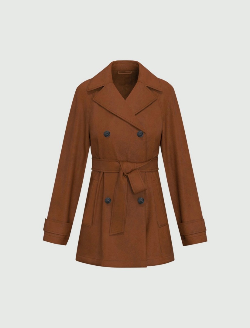 Face the transitional season with the new soft jersey trench coat. The double-breasted tailored fit and belted waist define a bold silhouette, complemented by the matching skirt. Jersey trench coat with a smooth and soft feel. Straight fit. Lapel collar. Double-breasted button and belt closure. Long raglan sleeves with toggles at the cuffs. Side welt pockets.