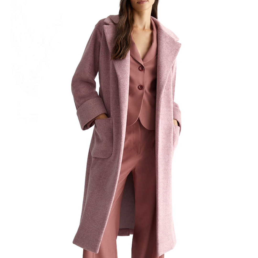 Coat in viscose blend Lurex® details Chevron motif Lapel collar Patch pockets on the sides Cuffs with turn-ups Back slit Closure with matching belt in sur ton