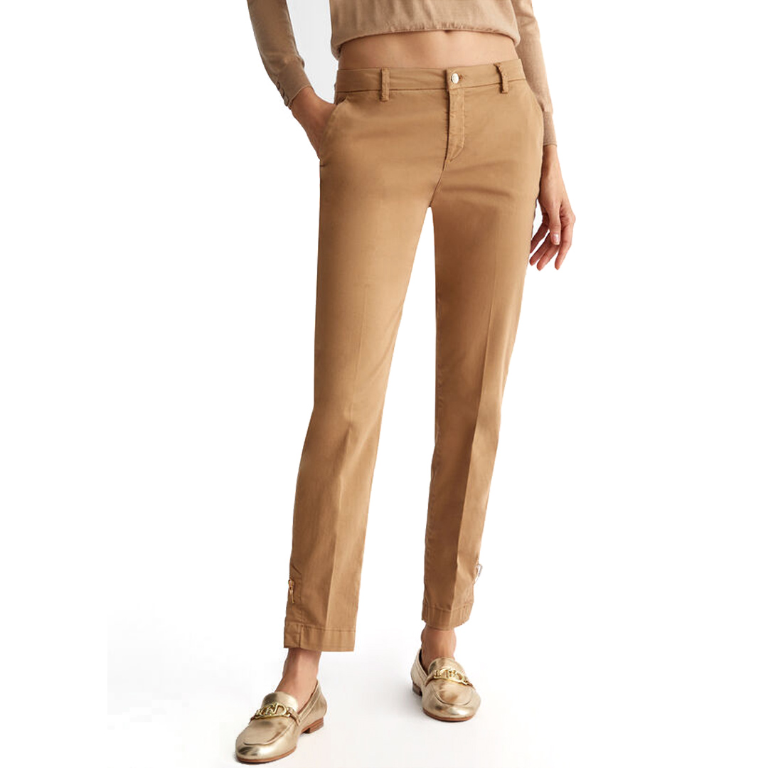 Stretch cotton chinos Ironed pleats Regular waist Side pockets Welt pocket on the back Metal logo on the back Slit with metal pin at the ankles Concealed zip and button fastening