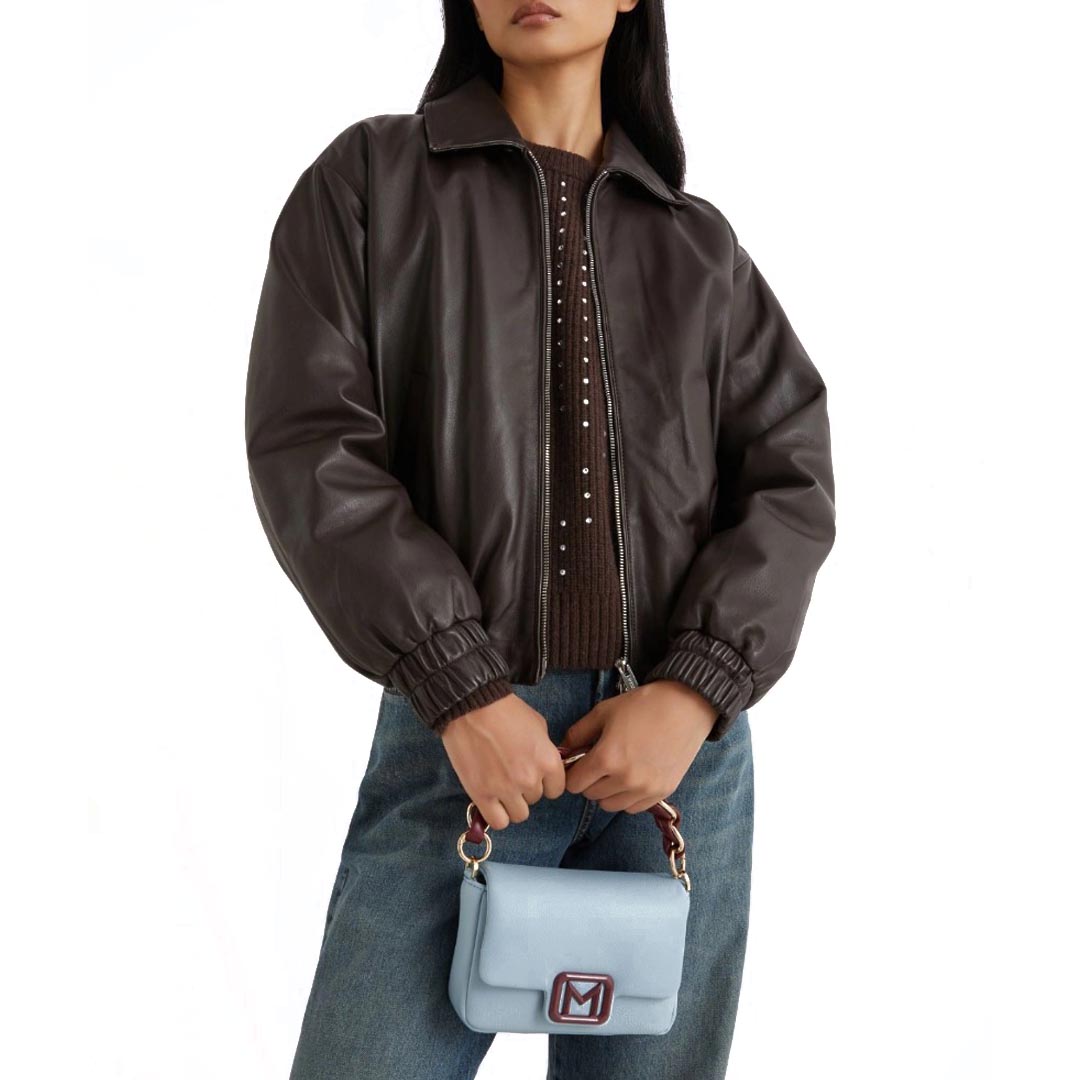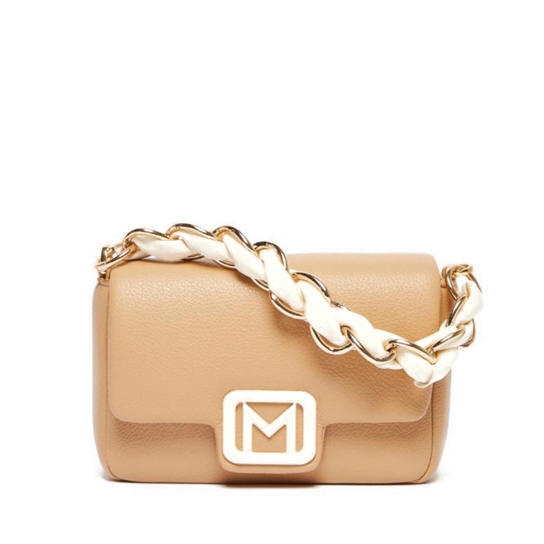 The Le Muse collection: bags with an iconic design that combine style and functionality. A versatile accessory designed for those seeking elegance and practicality in a single detail. Small Le Muse bag in coated fabric with a hammered effect and lightly padded. Braided handle with metal chain. Personalized lining. Can be carried by hand or cross-body with a long removable shoulder strap. Flap closure with magnetic closure and contrasting logo plaque. Dimensions: 17.5 x 5.5 x 11.5 cm.