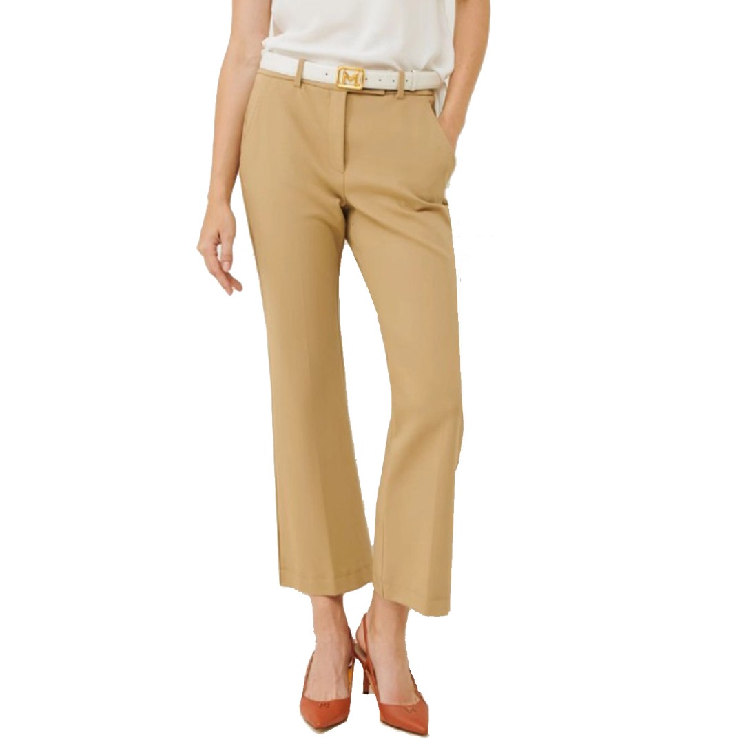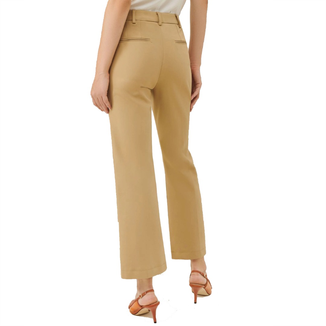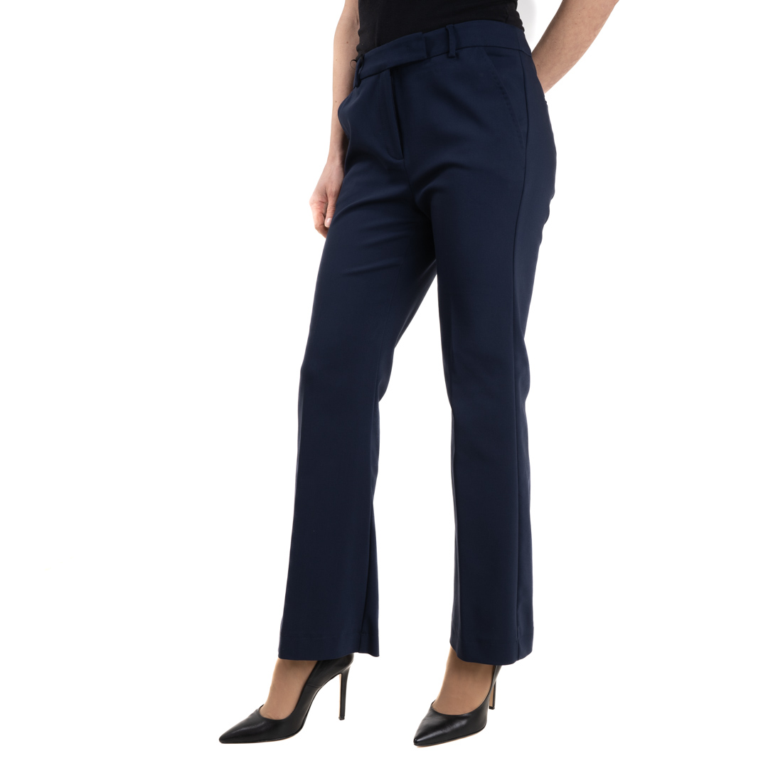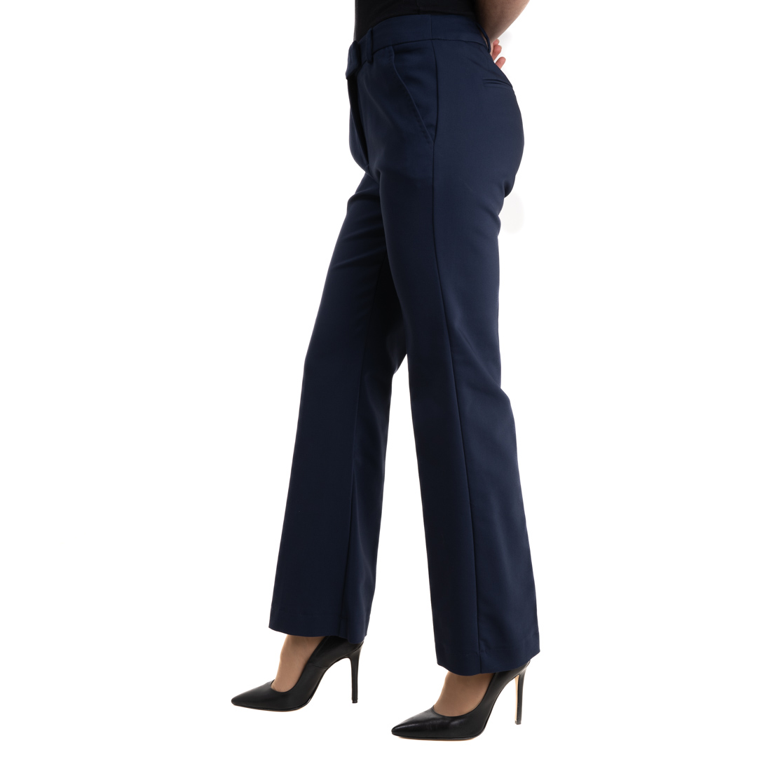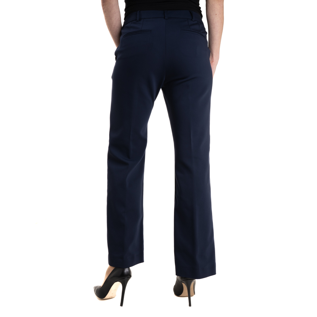 Stretch cotton blend trousers, straight fit. Concealed hook and zip closure, slant pockets on the front, welt pockets on the back. Front and back ironed crease. Cotton-containing fabric from a chain of suppliers committed to low-impact agriculture.