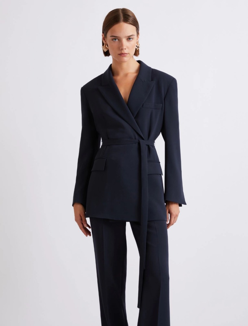 Designed for the office, but also perfect for outings in the city: a new technical cady jacket with a straight fit. The belt and cuff slits suggest versatility and great styling freedom. Technical cady jacket with internal lining. Regular fit. Peak lapel neckline. Double-breasted closure with belt and cuff slits. Side pockets with flap and welt.