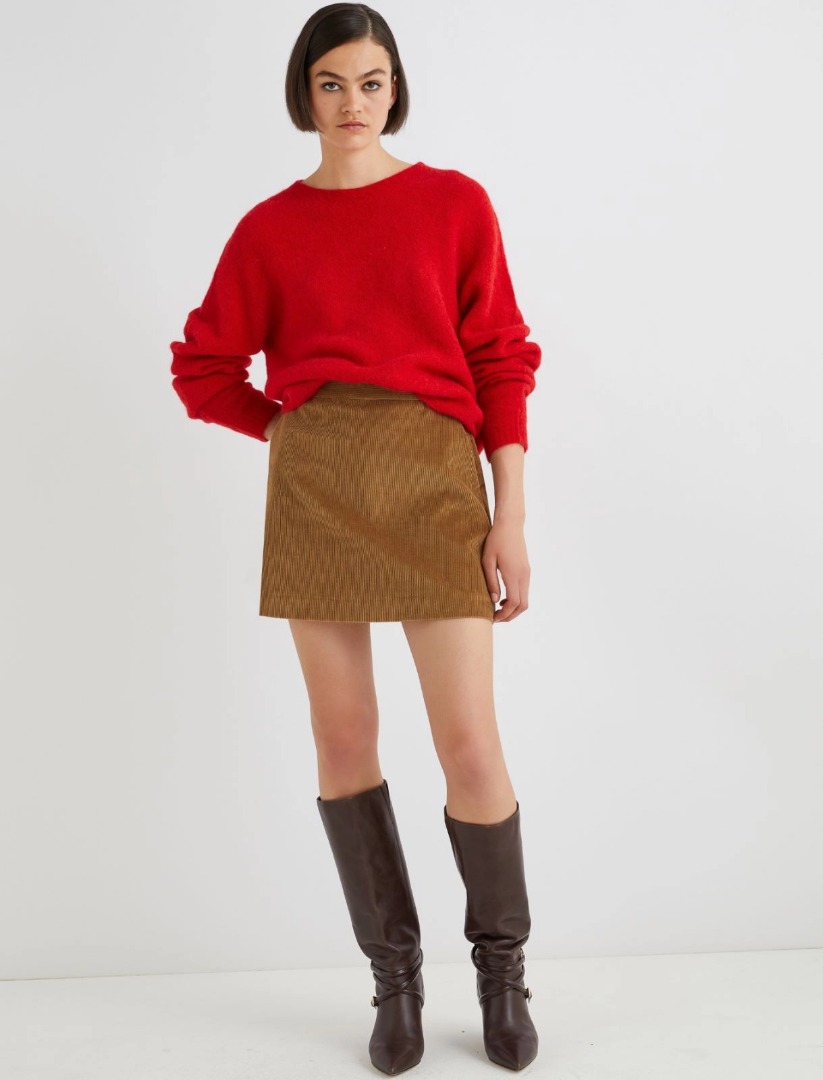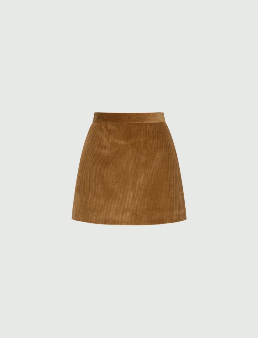 With its clean lines and corduroy, this skirt adds a touch of seventies flair to your everyday looks. Complete the look with a contrasting sweater and boots, and you're ready to go out. Corduroy skirt. Straight fit. Invisible zip back opening. French pockets on the sides. Lined.