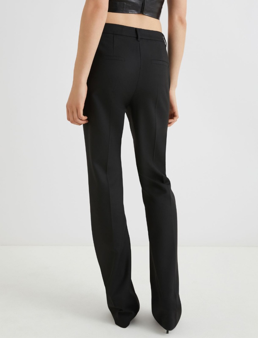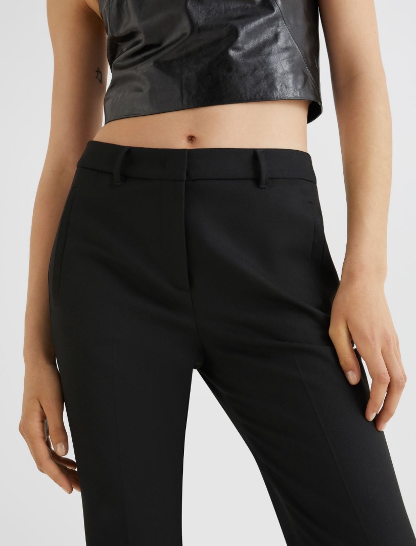 Take a pair of flared trousers and imagine them stretchy enough to flex with your every move. Stretch viscose blend trousers. Regular fit, flared line. Hook-and-eye closure and hidden zip. Side welt pockets, single welt back pocket.