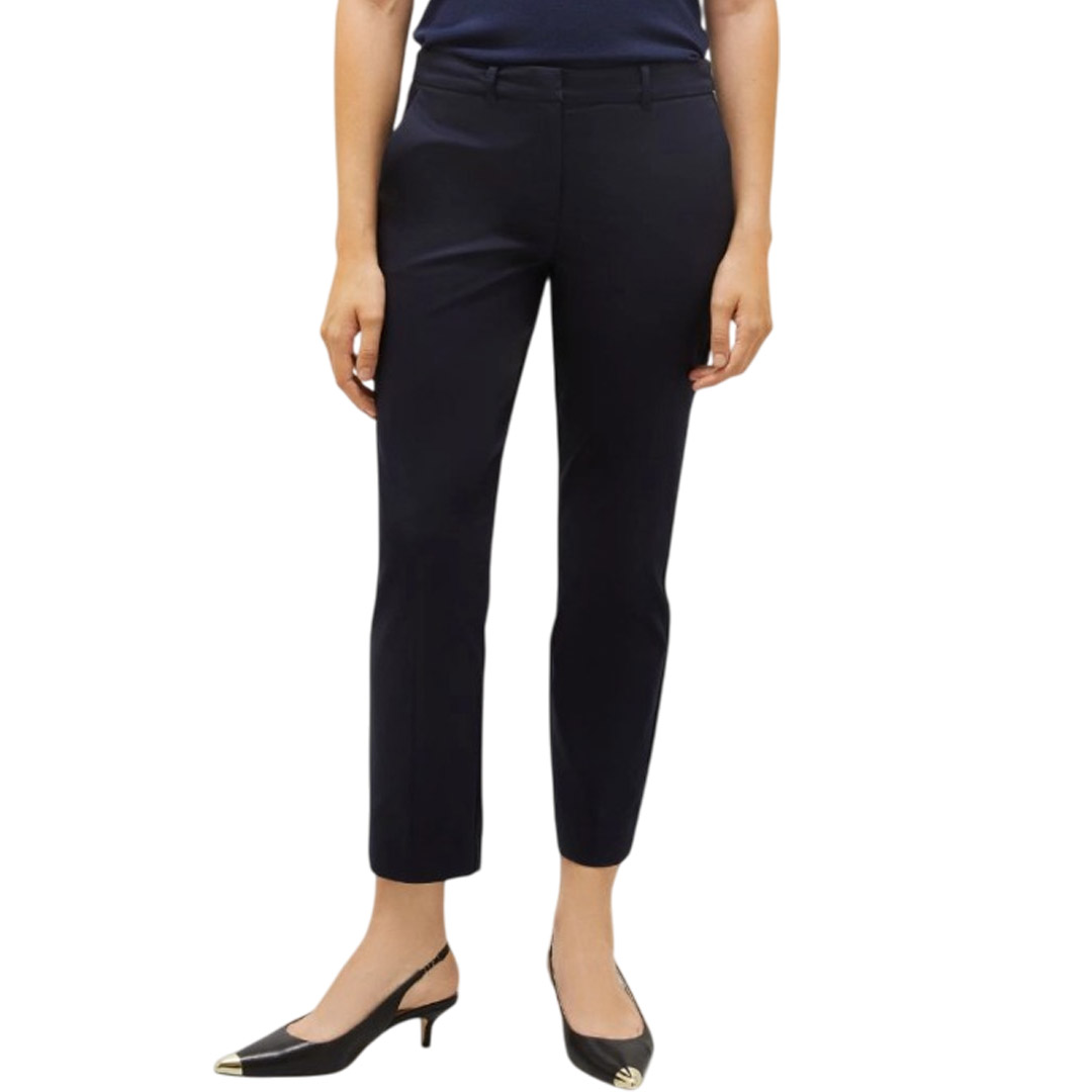 Elegant, slim and always perfect: these cigarette trousers show off a masculine touch for a feminine charm yet to be discovered. Pair the model with nude-effect sandals and a bright shirt for a surprising outfit. Double-face stretch cotton blend trousers Cigarette cut Zip fastening covered by flap and hook and bar Slanted side pockets and back welt pockets Hem slit detail