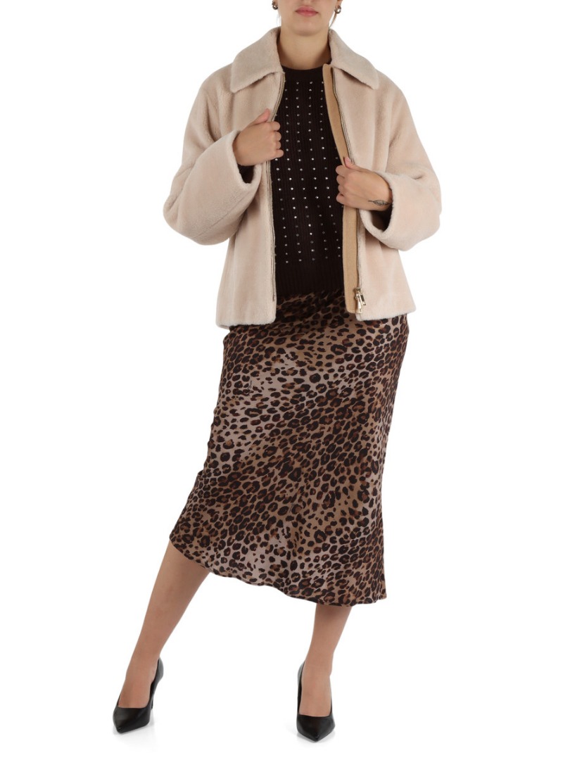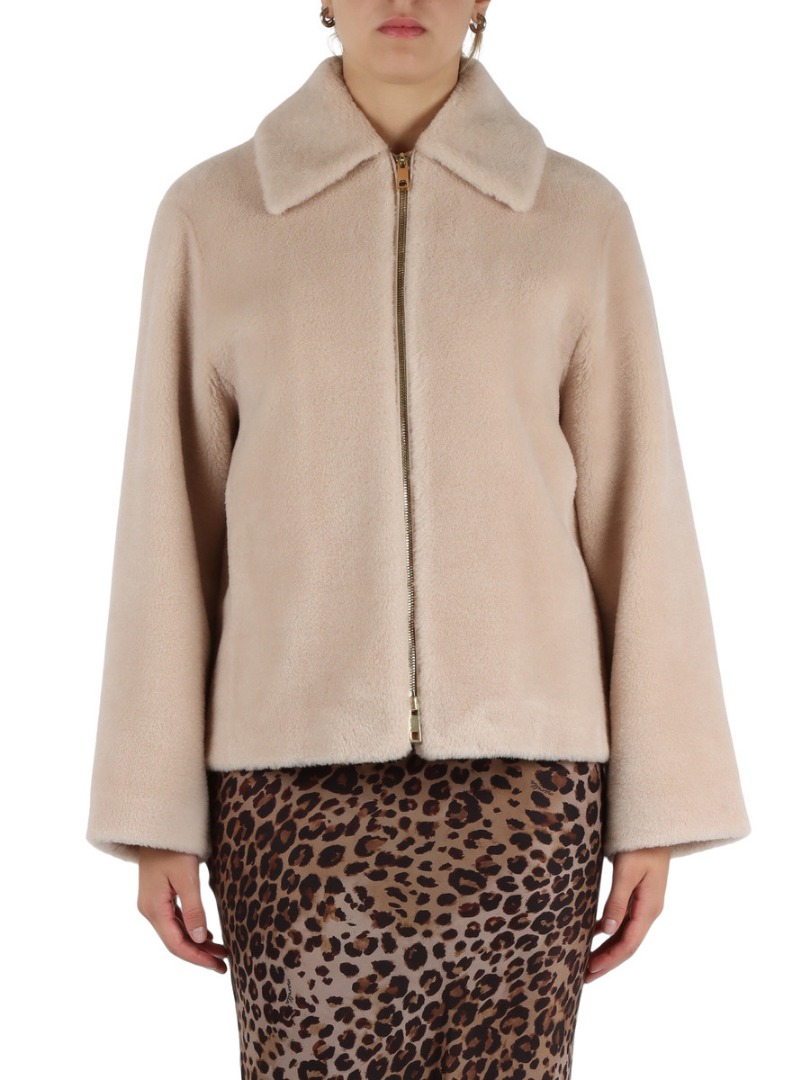 The Marella Sbotto natural faux fur jacket combines comfort and classic style. With long sleeves and a chic collar, it offers warmth without sacrificing elegance. The soft faux fur adds a luxurious touch, while the zip closure ensures a comfortable and secure fit. Perfect for being comfortable and stylish on cooler days. Marella Sbotto women's natural faux fur jacket Regular fit Long sleeves Collar Zipper closure Faux fur