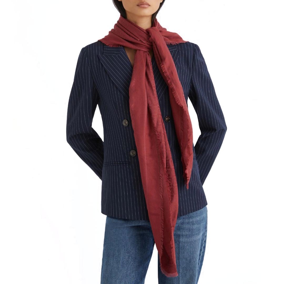 Extremely lightweight and in the brightest shade of blue, this stole wraps the shoulders and décolleté in a cloud of elegance. Viscose and modal shawl. Monogram jacquard motif. Short fringes on the edges. Size: 120 x 120 cm.
