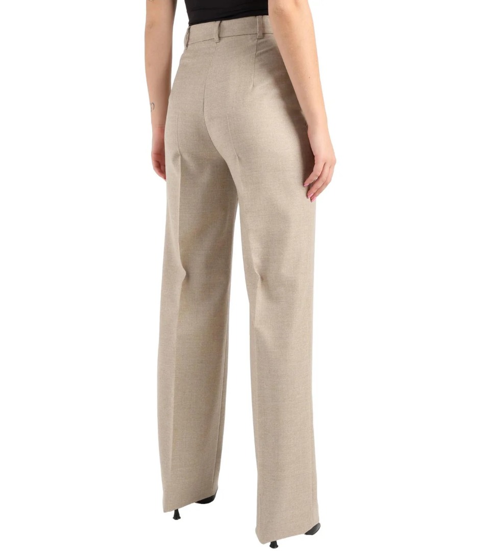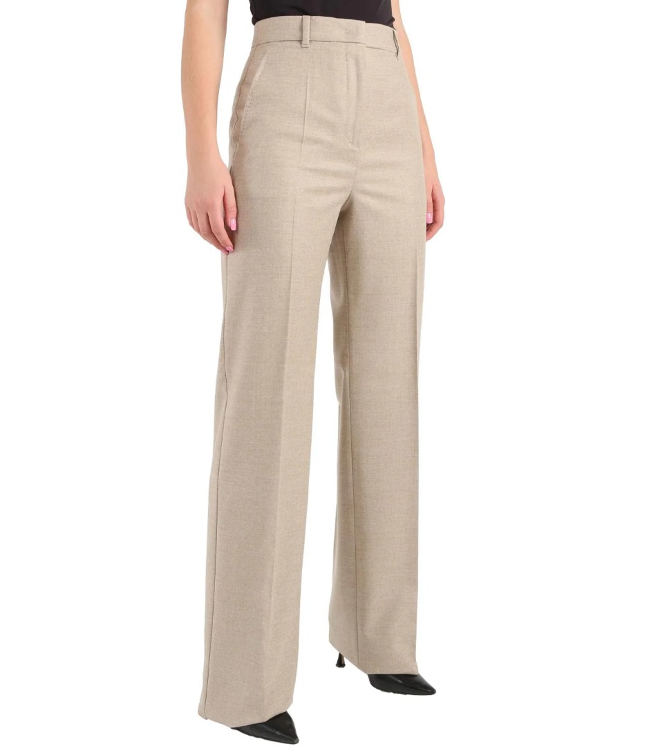 "Lambro" trousers in stretch wool flannel, sand beige, with a tailored fit and straight silhouette. They feature a regular waist with a high waistband, a zip fly with a hook and eye closure, a pressed pleat at the front, slant pockets, and belt loops. Regular fit, elegant and versatile, ideal for office looks and refined everyday outfits.