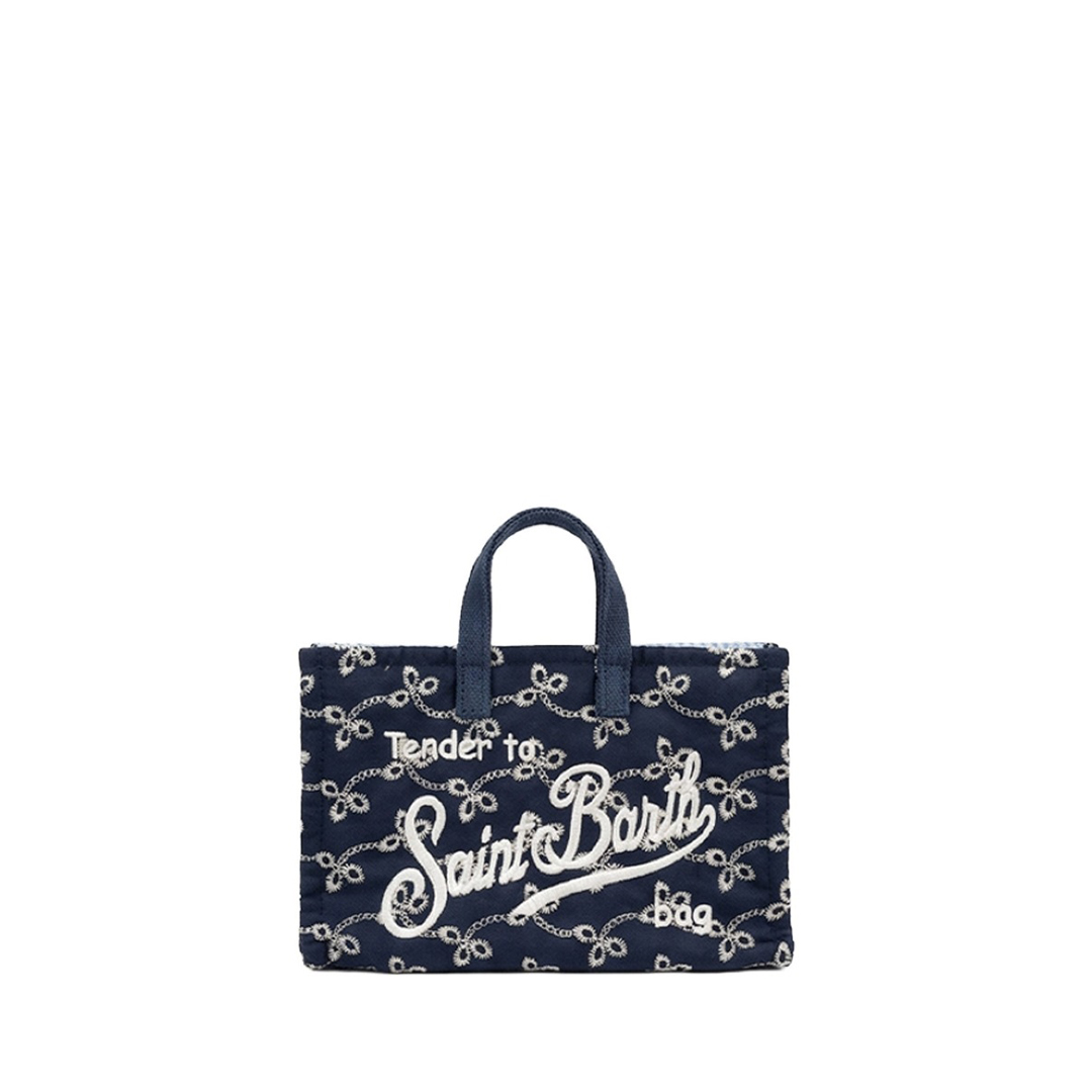 MC2 Saint Barth Phone Bag blue with Sangallo design Measurements: 15x10x3.5 cm Blue Sangallo design Navy blue shoulder strap Embroidered logo on the front Double handles