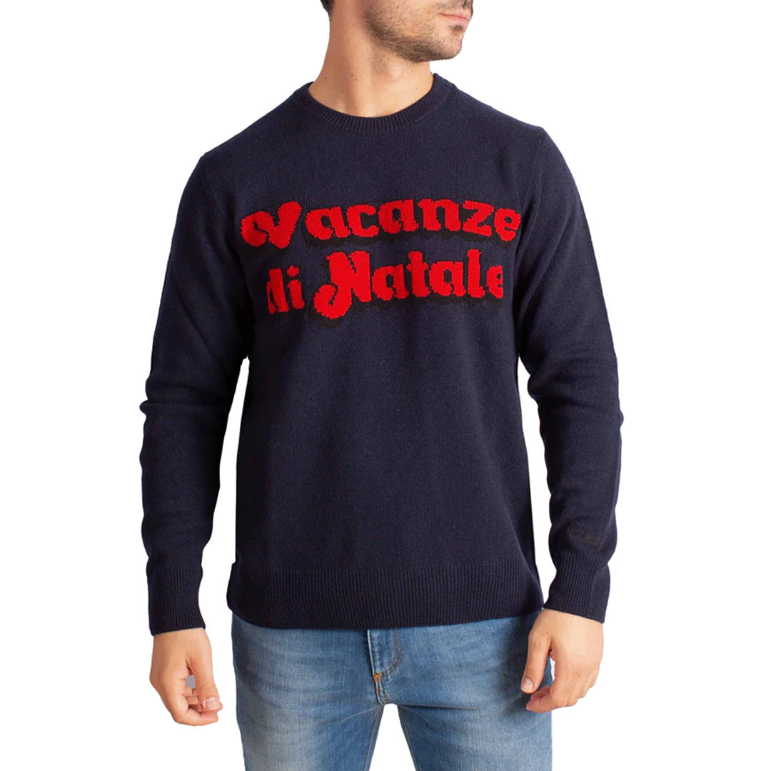 The Heron is a men's sweater that combines elegance and versatility in an impeccable design. Available in various styles, this sweater is crafted from high-quality materials that ensure long-lasting comfort and a perfect fit. The refined design and meticulous finishing make the Heron suitable for a variety of occasions. With sophisticated details and a modern silhouette, the Heron is the ideal piece to add a touch of class to your wardrobe. Men's blue crewneck sweater. Ribbed collar, cuffs, and hem. St. Barth logo embroidery on the cuff. Jacquard Christmas Holidays logo print on the front. Regular fit.