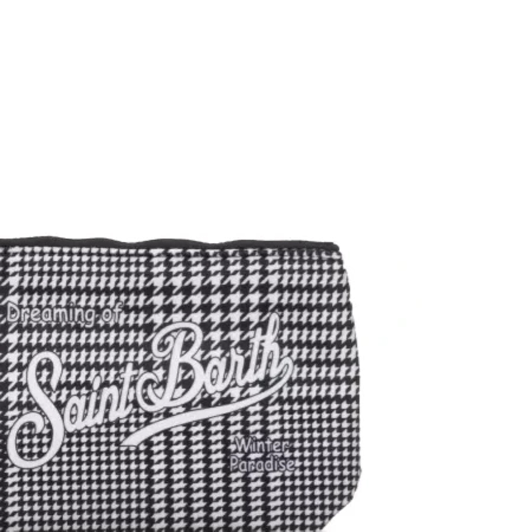 Mc2 Saint Barth men's Aline clutch bag, versatile and perfect for holding your accessories. Zippered clutch bag. All-over Prince of Wales print. Black and white tones. Exclusive Saint Barth printed logo. Practical pull tab. Dimensions: 20 x 14.5 x 7 cm.