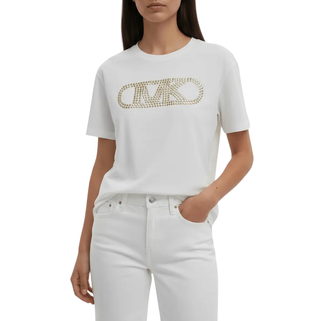 MICHAEL KORS short-sleeved T-shirt, crafted from soft cotton for optimal everyday comfort. The relaxed fit and signature design offer a modern edge and are easy to pair with jeans or dressier trousers. Fit: right. Neckline: round. Sleeves: short. Length: regular. Details: MICHAEL KORS logo applique on the front.