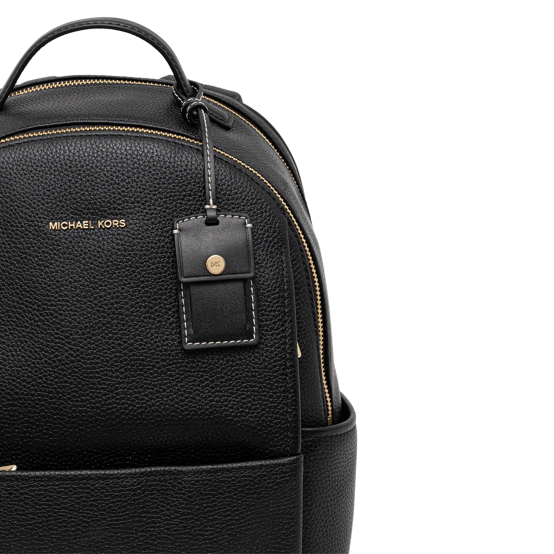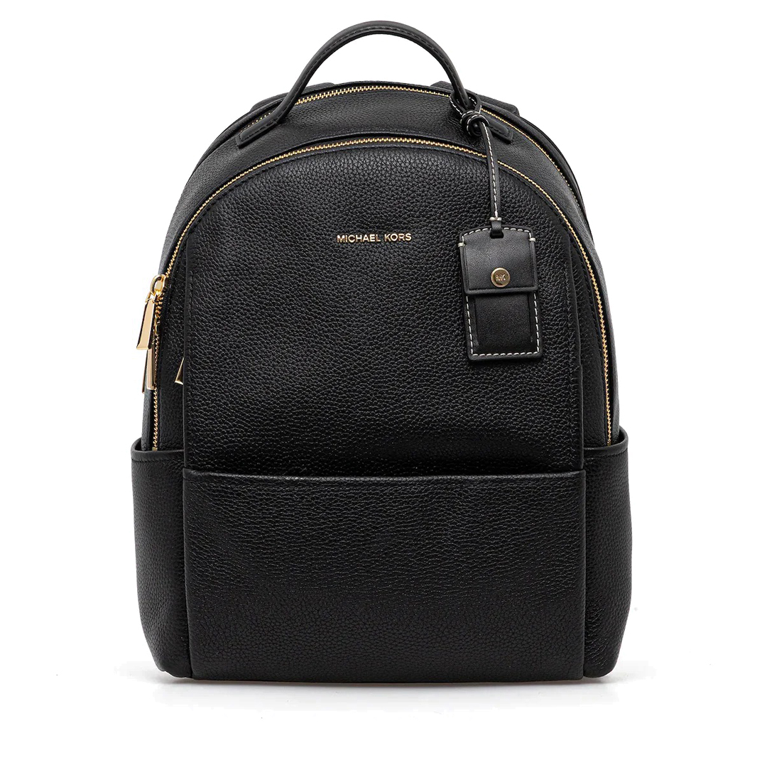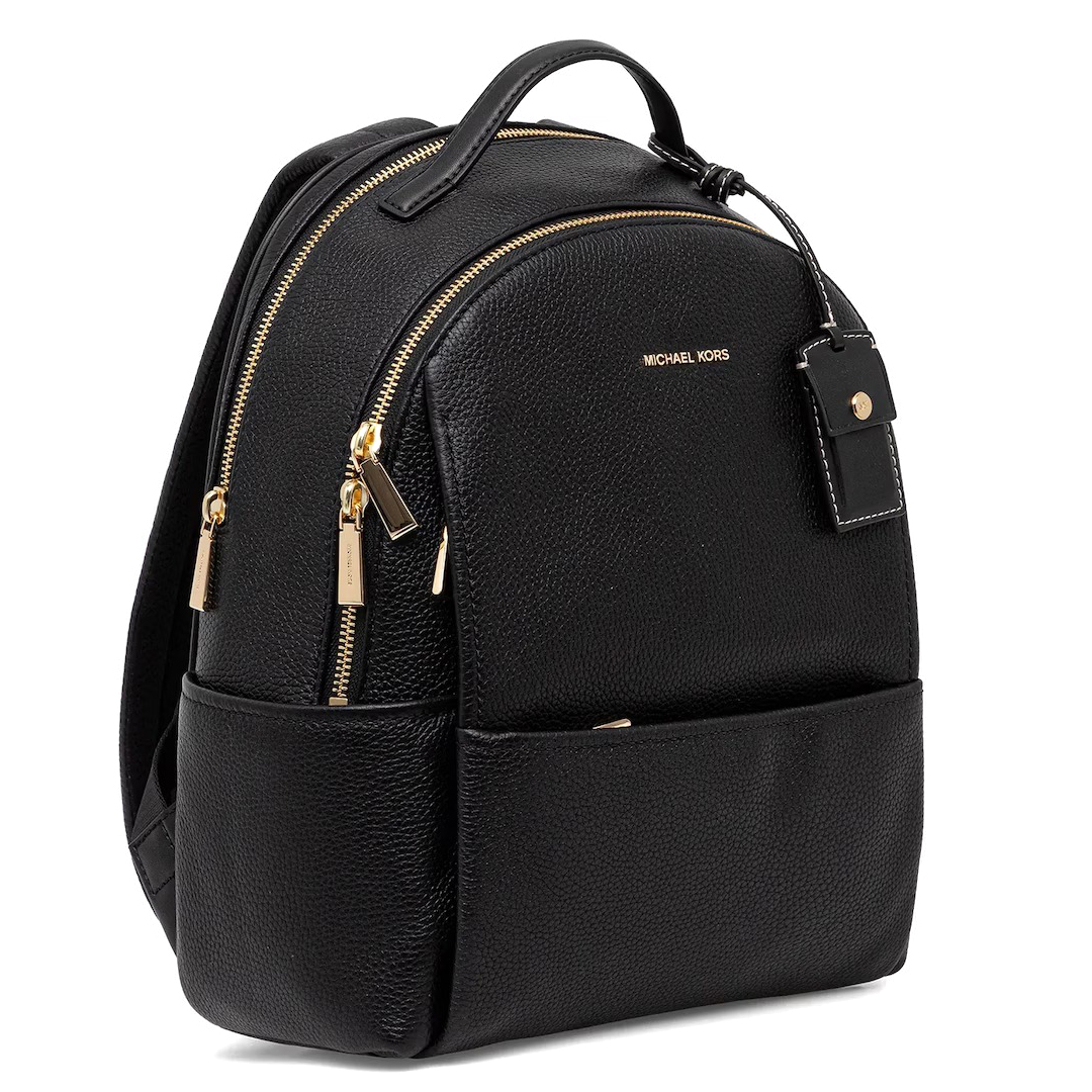 MICHAEL Michael Kors backpack. Made of genuine leather. - Two compartments. - Zip closure. - Three front zippered pockets to secure small items. - Side pockets. - Address tag included. - Two interior slip pockets. - Soft padding on the back for added comfort. - Lined model. - Not compatible with A4 size paper. - Short handle for a comfortable grip. - Adjustable straps allow you to customize the length. - The strap on the back panel allows you to attach the backpack to the handle of your suitcase. - The included dust bag protects the product from dust. - Depth: 11.5 cm. - Height: 32 cm. - Width at the base: 25.5 cm.