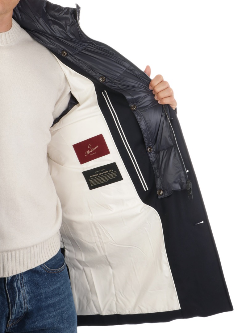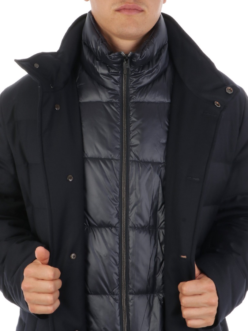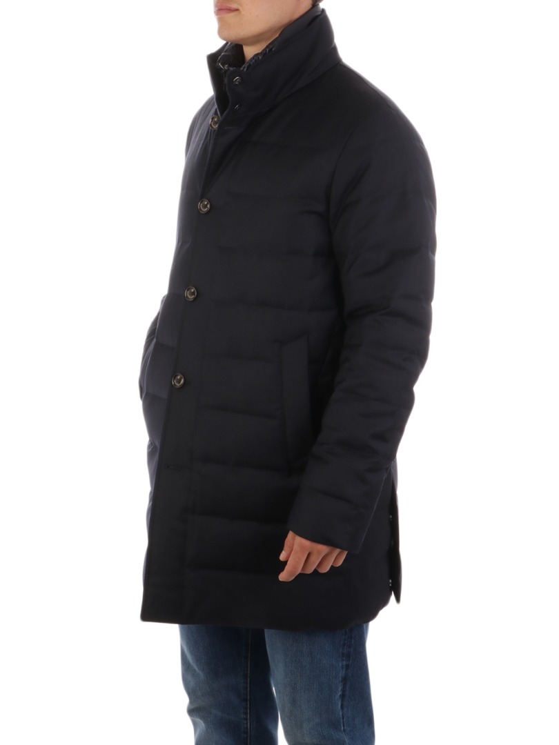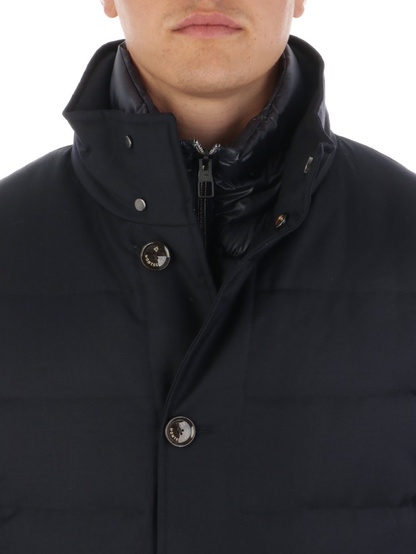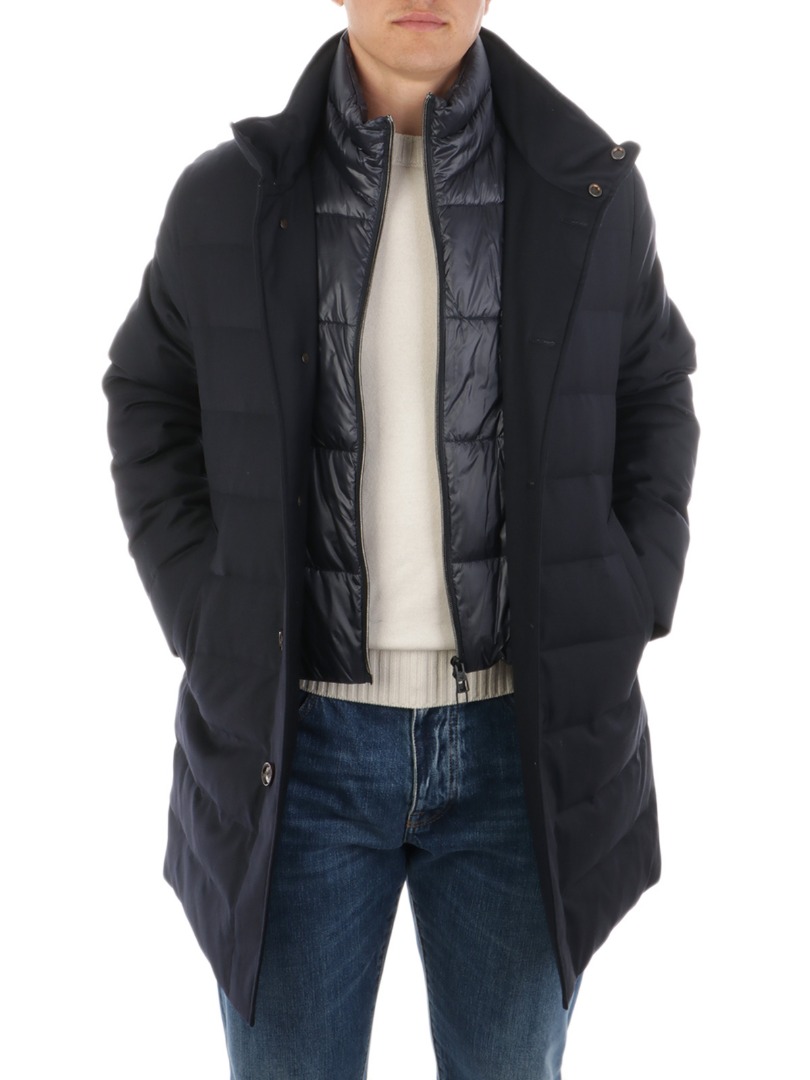 Men's quilted wool down jacket Padded with down and feathers Full-zip and button closure Removable quilted front with full-zip closure Side welt pockets Stand-up collar Regular fit