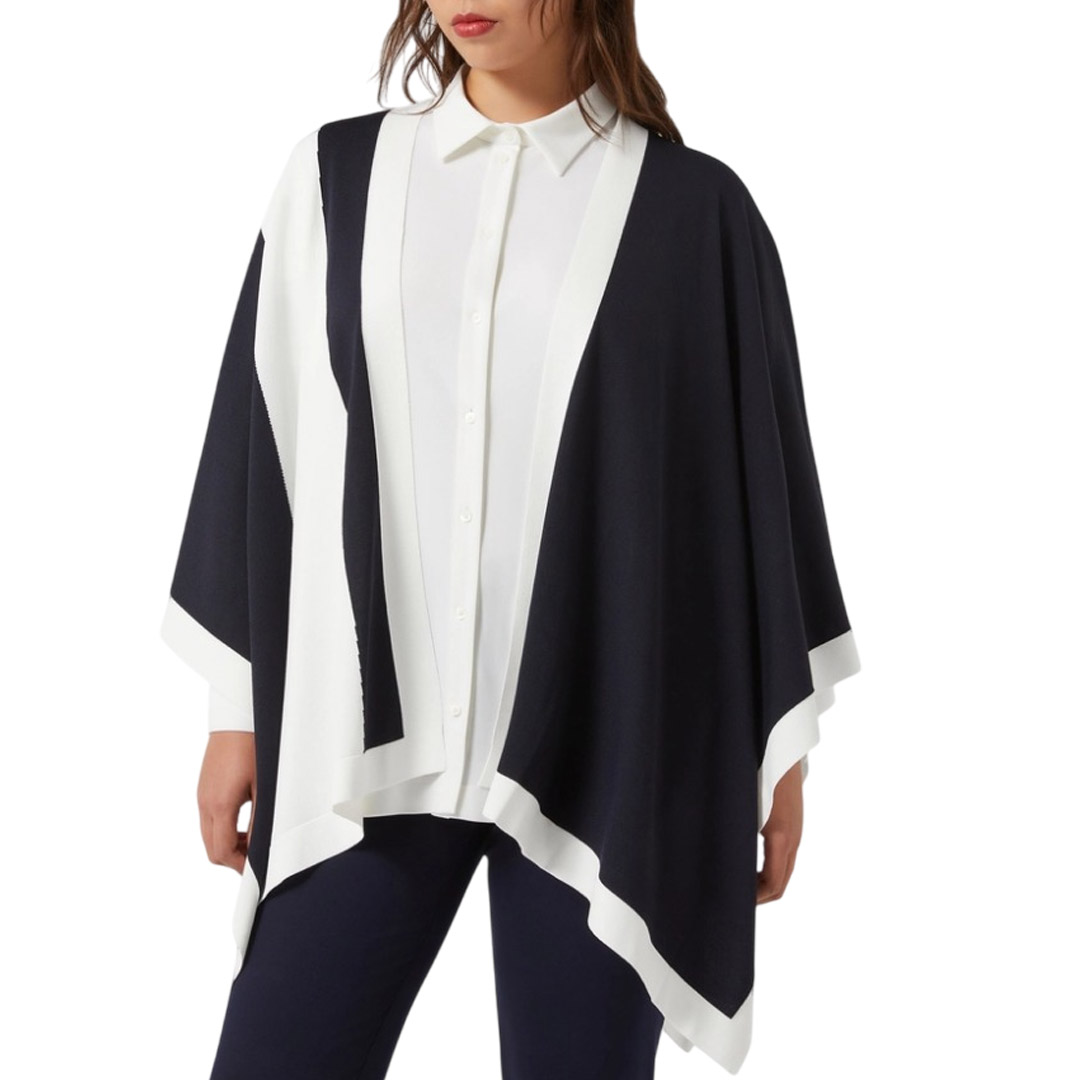 Wear the intarsia stretch viscose cape as and when you want. Perfect for completing a myriad of styles. The piece is part of the Persona by Marina Rinaldi collection. Stretch viscose Intarsia workmanship Link stitch finishes