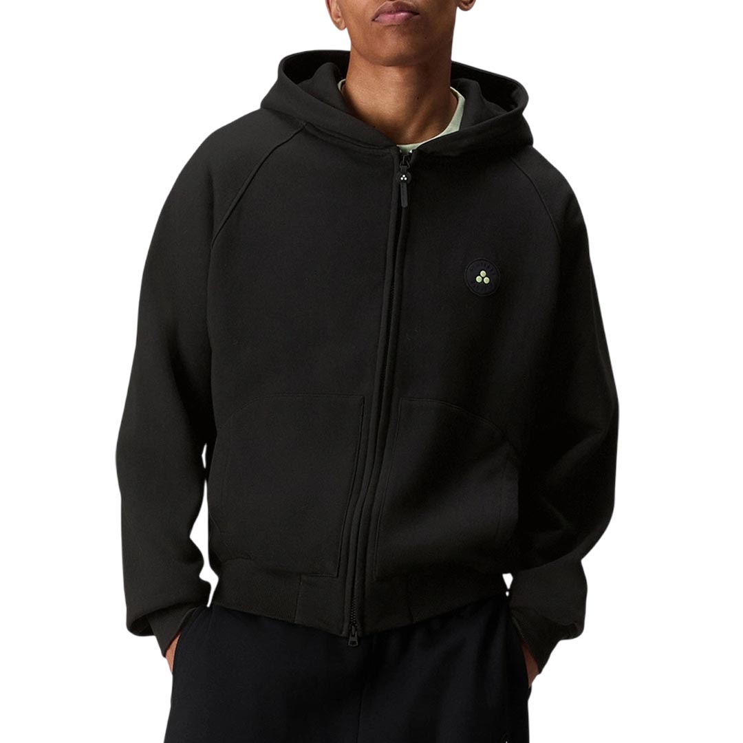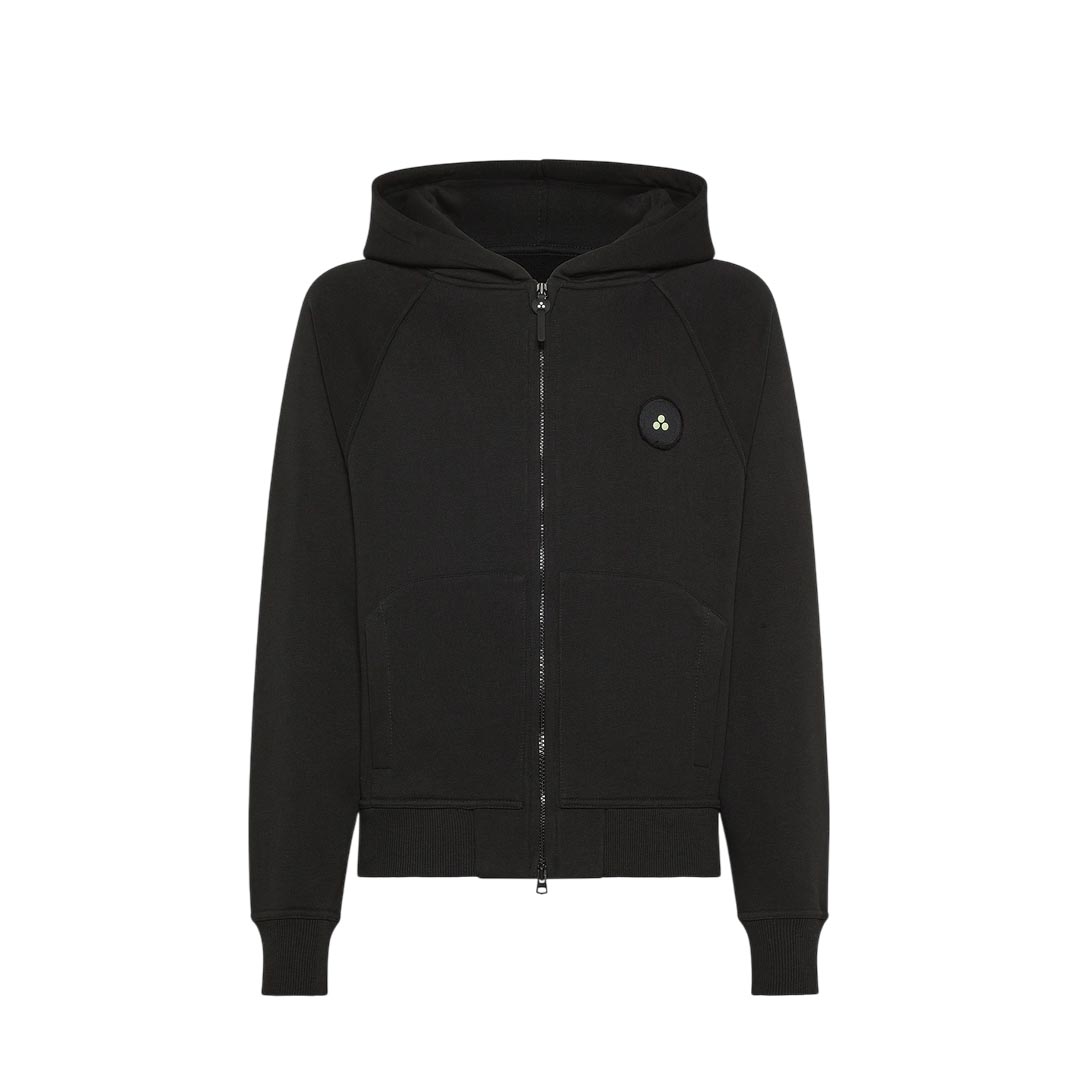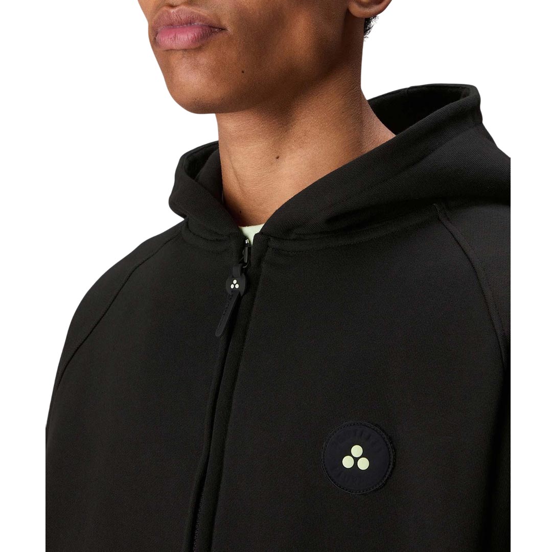 Essential, yet bold. This zip-up sweatshirt from the Peuterey Plurals FW25 capsule collection in collaboration with Tony Effe combines comfort and street attitude in a clean, versatile design. Made of 100% cotton, it features a hood, a full-length central zip, elastic cuffs and hem, side patch pockets, and the iconic round logo patch on the chest. The genderless fit and minimalist style make it perfect for every day, easy to mix and match. Born from the collaboration between Peuterey Plurals and Tony Effe - an icon of trap and Italian fashion - this sweatshirt embodies a vision that blends fashion and personality. 100% cotton, genderless, central zip, embroidered logo, Peuterey Plurals x Tony Effe line, hooded