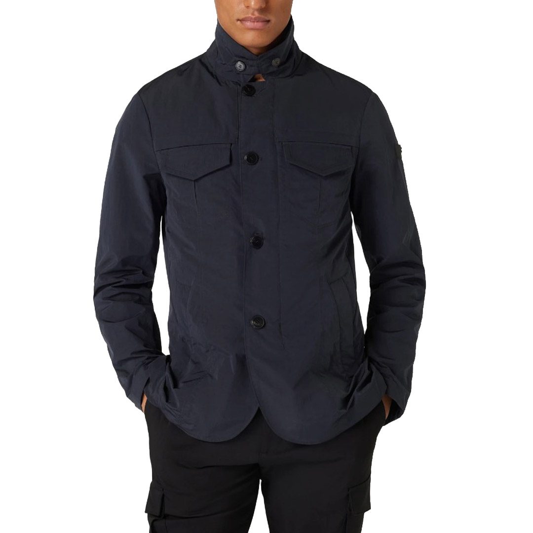 Blazer in cotton and nylon canvas, with a matte, soft and water-repellent appearance. Central closure with sewn buttons, shirt collar and high pockets with flap. For the sporty chic man with a dynamic and metropolitan style. Central closure with sewn buttons Water repellent Side pockets and high pockets Made of nylon poplin and microfibre. Regular fit