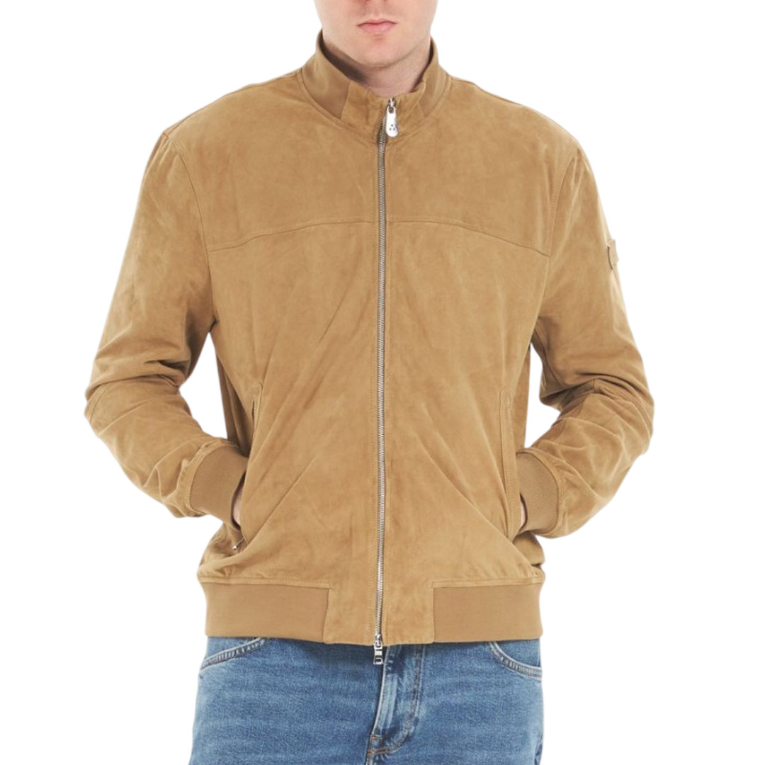 Classic biker in very soft leather, featuring an essential and refined design. Mandarin collar with press stud, matching cuffs and full metal zip with double slider. Functional details such as side welt pockets and a chest pocket complete the look. Short and with a slim fit, it represents a must-have for the spring wardrobe, synonymous with quality fabrics and attention to detail. Perfect for elevating everyday looks with a touch of timeless style. In soft leather Length: short Slim Chest pocket Tone-on-tone logo customization