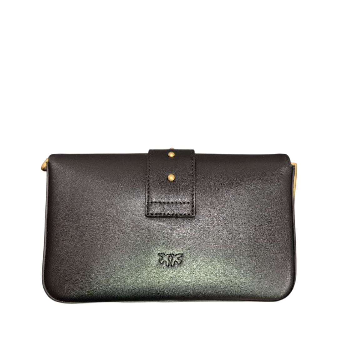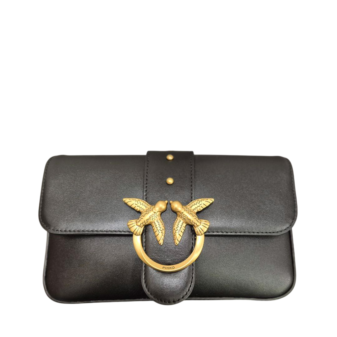 Mini Love Bag Slouchy small shoulder bag made of soft leather. The model features a double shoulder strap: a particularly versatile chain strap with an adjustable leather shoulder strap, and a more original adjustable leather strap decorated with sparkling rhinestones and metal chains. Gold and silver-tone metal details enhance the design, adding a sophisticated and bold touch, while the iconic Love Birds Diamond Cut buckle adds the finishing touch. The interior is lined in cotton drill fabric and includes a zipped wall pocket. Activate your PINKO bag: verify the authenticity of your product and access the personalized experience by holding your smartphone close to the Love Birds embroidery on the back of the bag! Height: 15 cm Width: 7 cm Length: 22 cm