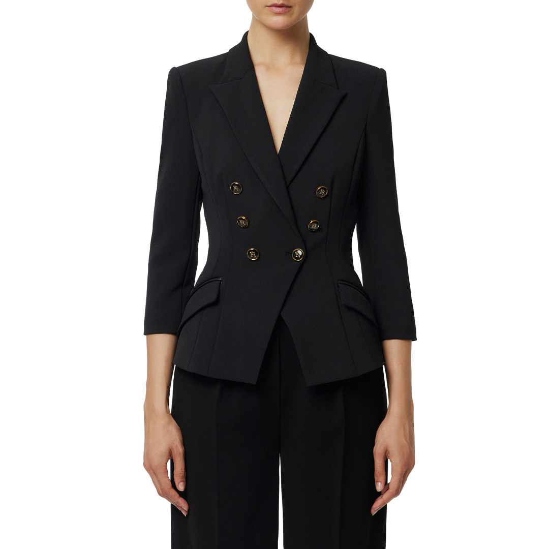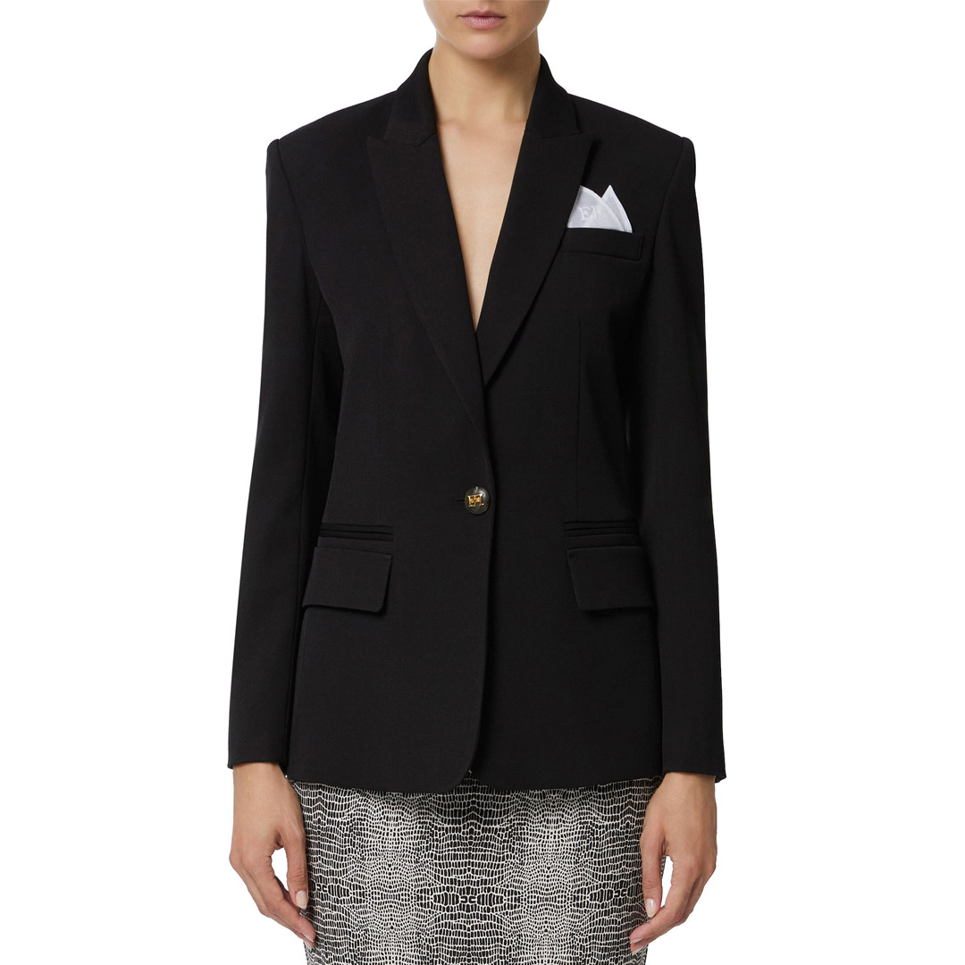 Single-breasted, fitted blazer jacket in technical stretch viscose with a woven stitch. The piece is finished with tailored details, such as darts that flatter and accentuate the figure, and classic elements like the lapel collar and flap pockets. Pair the blazer with trousers in the same fabric for a tailored look, or add a shirt for a formal, yet understated, look.