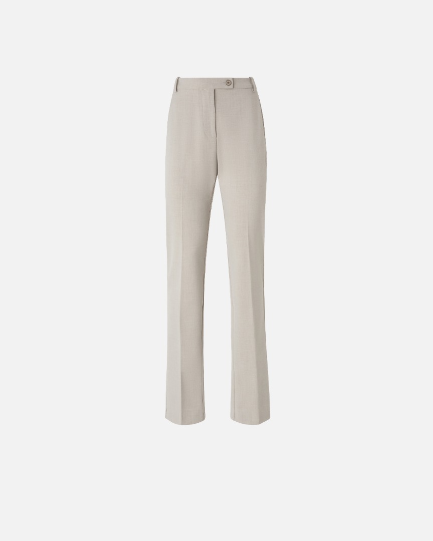 Long, straight-fit trousers crafted from a classic-inspired melange canvas combined with a technical knit. A perfect example of a reinterpretation of a more formal design, this piece offers innovative and sporty details, such as the barely-there zip closure on the back of the leg, which allows for an adjustable vent. These are the perfect trousers to wear to the office with a matching blazer or anywhere you want to add a touch of sophistication, paired with a particularly feminine blouse or top.
