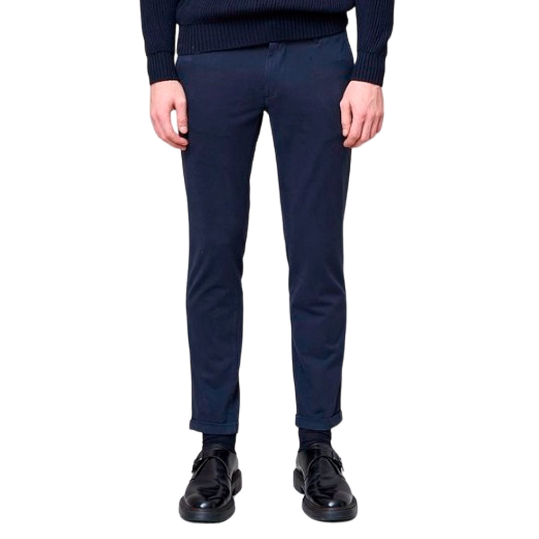Chinos trousers, French front pocket. 2.5 cm turn-up detail at the bottom of the leg and watch pocket on the right front side when worn. Slim fit, medium-high waist.
