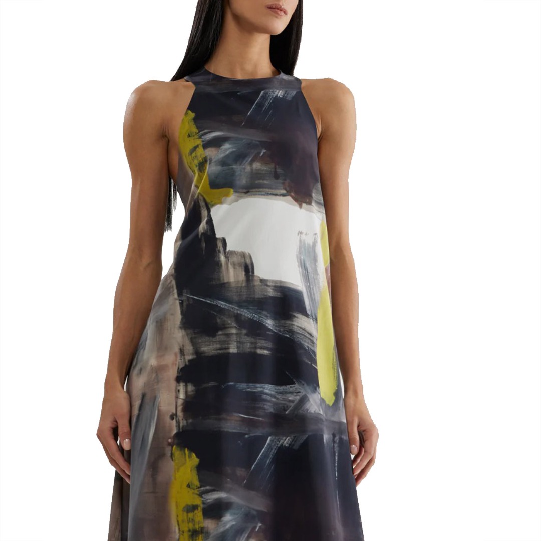The Dress Paint Summer Woman is a dress with a strong and decisive soul. The design is A-line, the wide American neckline enhances the line of the back, while the print recalls the watercolor brushstrokes of a contemporary art painting. All these elements enrich the garment made in the exclusive SURFLEX® stretch fabric with personality, which guarantees freshness and gives the garment an extra soft touch.