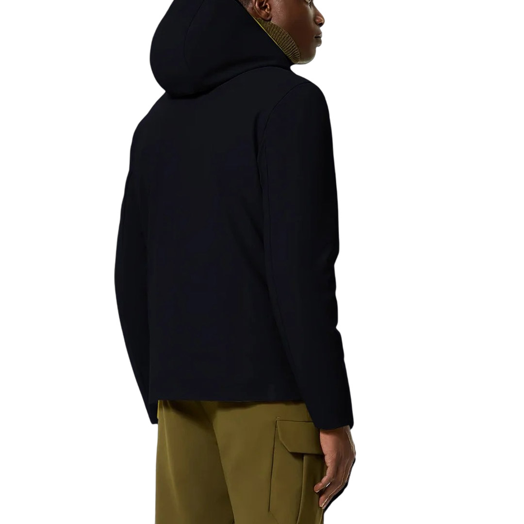 The ultra-modern and minimalist design has made this warm and weather-resistant winter jacket a true instant classic from the Collection. The refined construction in breathable and waterproof Stratofabric #3 membrane fabric features an exterior in exclusive stretch SURFLEX®. The lightness and comfort of the regular fit are complemented by the protection from rain and wind provided by the fixed hood. Thermal insulation is guaranteed by the warm and lightweight 90/10 duck down padding, contained in tubular channels that prevent the feathers from escaping. The contrasting front closure and the heat-sealed zips of the large side pockets add a distinctive touch to the super-matte look. The interior features a small pocket with an invisible zip and is enlivened by double fluorescent orange piping. The heart-shaped "Made with love, designed in Tuscany" tag and the black micro-injected logo on the left sleeve are the unmistakable style notes of this outerwear piece with a strong urban dynamism.