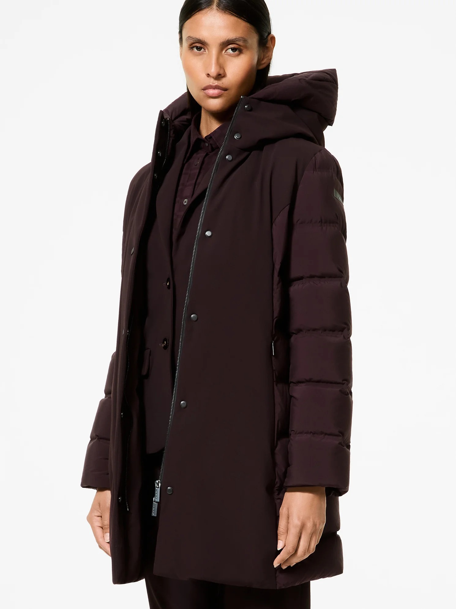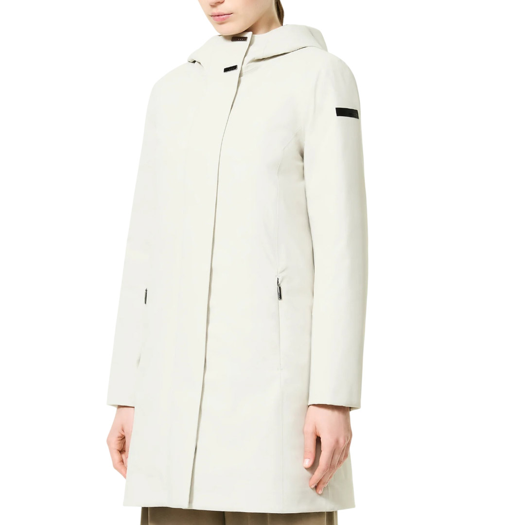 With its distinct lines, this feminine trench coat reinvents timeless outerwear with refined elegance. The original double-breasted model is enriched with classic details such as the right flap, which adds a touch of unique style; and the wide belt at the waist that emphasizes the figure. An aid on rainy days, the creation stands out for its combination of timeless style and the functionality of the waterproof and breathable membrane fabric, completing a refined look with a sophisticated note.