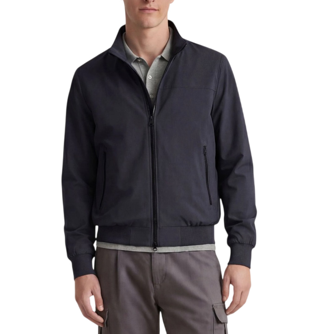 The men's Finlay waterproof jacket redefines the classic Harrington look with windproof and water-repellent fabric. Designed with a high collar, partially taped seams, and ribbed trims at the hem and cuffs, it features practical side pockets and an inside pocket. Personalized details like the custom zip puller and round logo on the sleeve add the unmistakable Save The Duck touch.