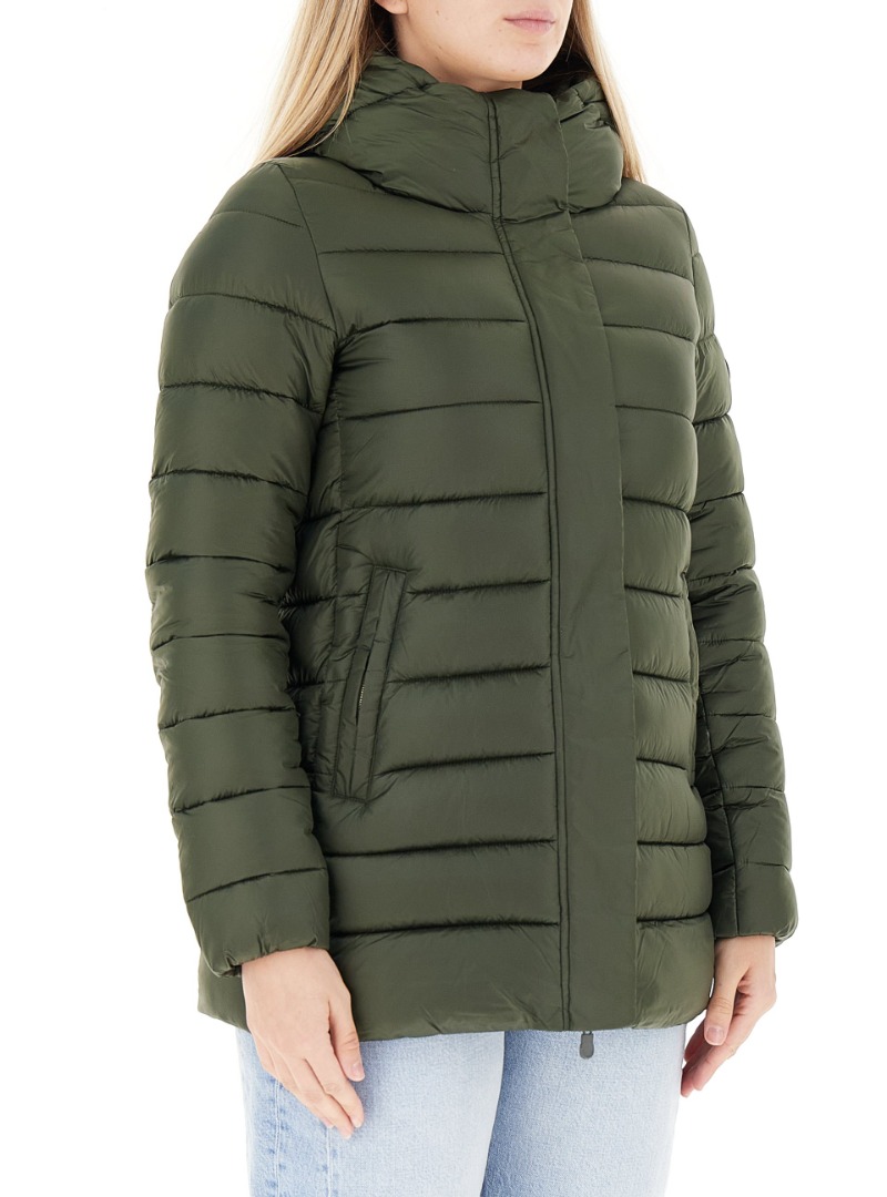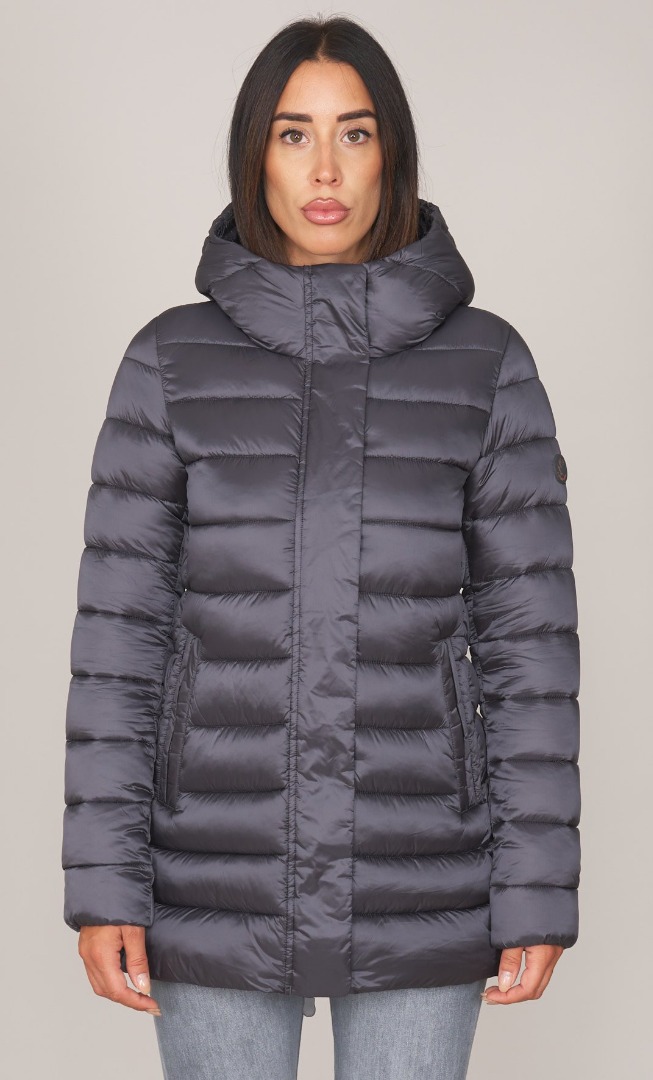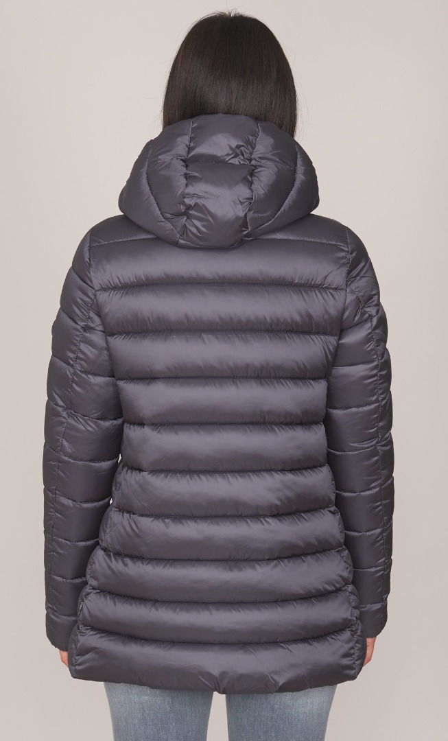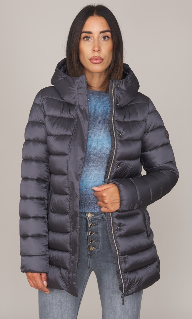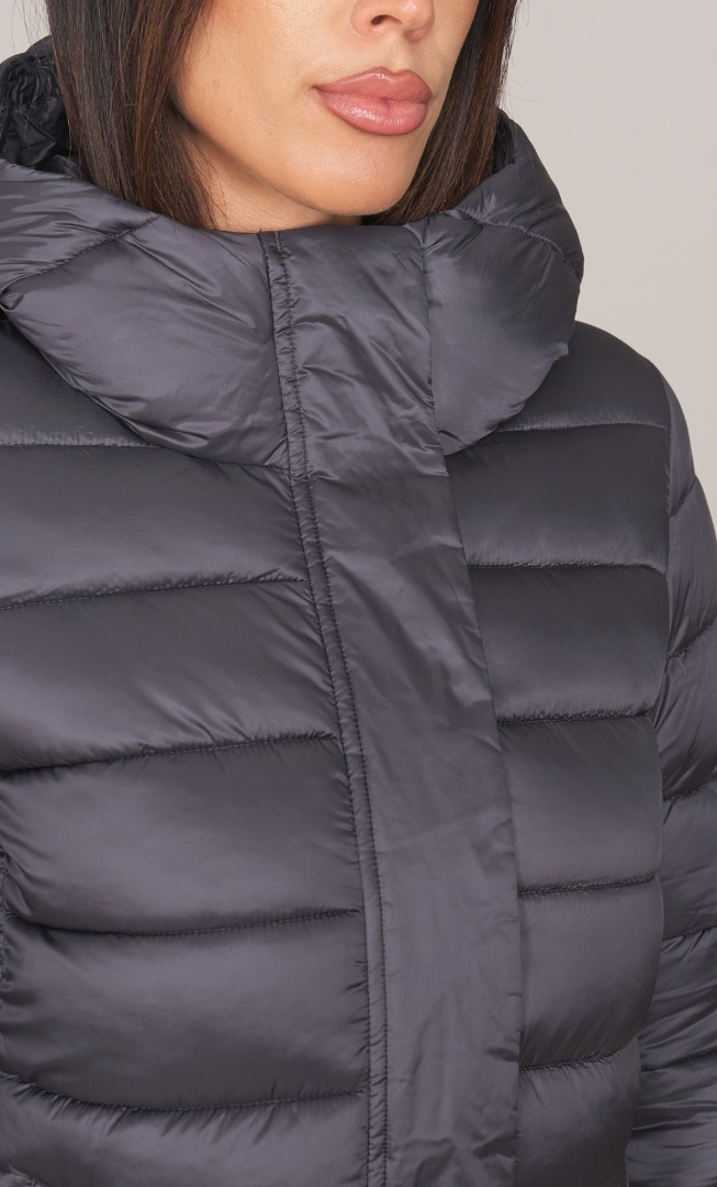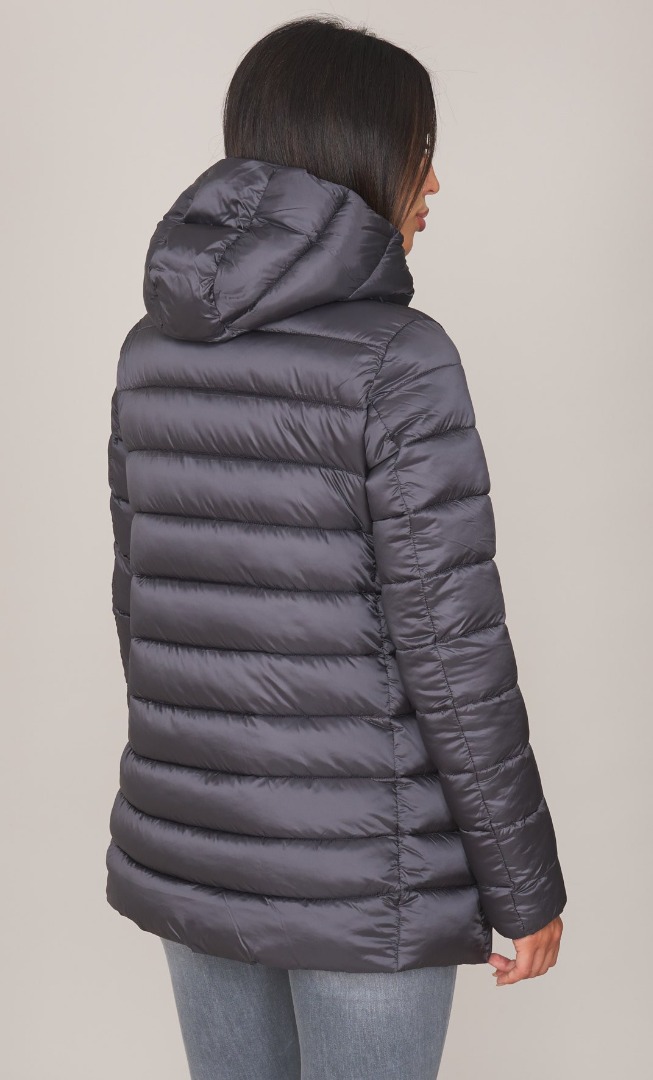 A guarantee of style and comfort against the cold, Drimia is a versatile puffer jacket with a long, loose fit and a comfortable hood. It closes with a shiny zipper and button placket, and features a personalized zip puller and a small, round, tone-on-tone logo on the sleeve. 100% ultra-high-density nylon is extremely lightweight and soft, with a fashionable, shiny look. Thin yet durable, it provides water and wind protection, wicks moisture, and dries quickly.