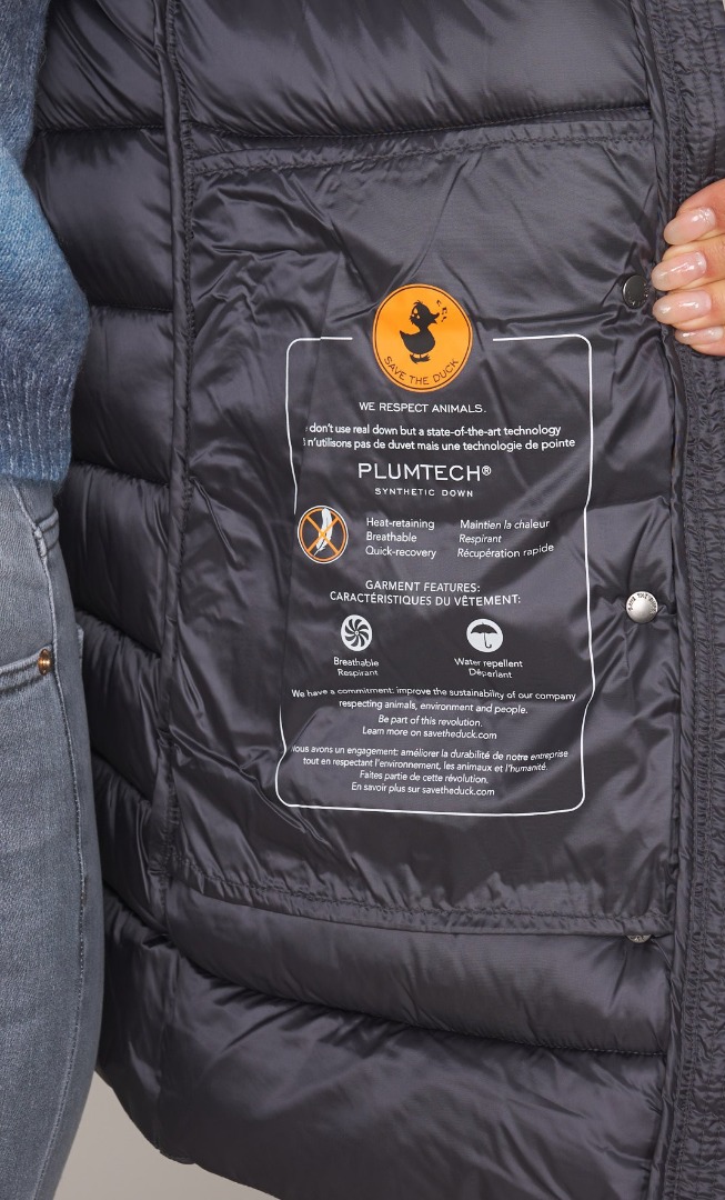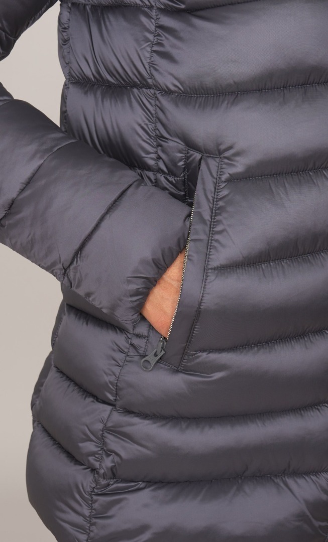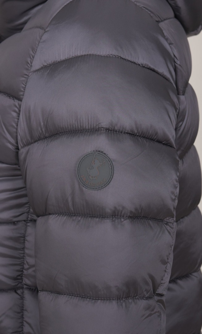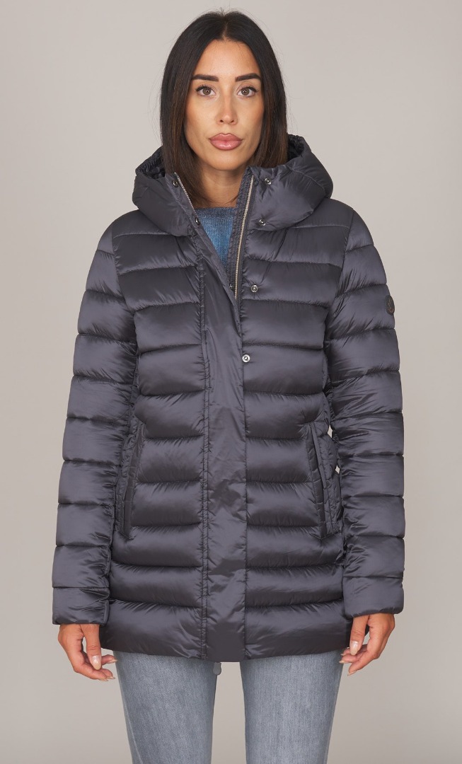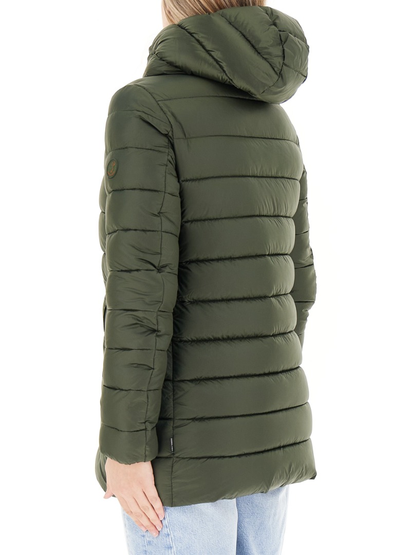A guarantee of style and comfort against the cold, Drimia is a versatile puffer jacket with a long, loose fit and a comfortable hood. It closes with a shiny zipper and button placket, and features a personalized zip puller and a small, round, tone-on-tone logo on the sleeve. 100% ultra-high-density nylon is extremely lightweight and soft, with a fashionable, shiny look. Thin yet durable, it provides water and wind protection, wicks moisture, and dries quickly.