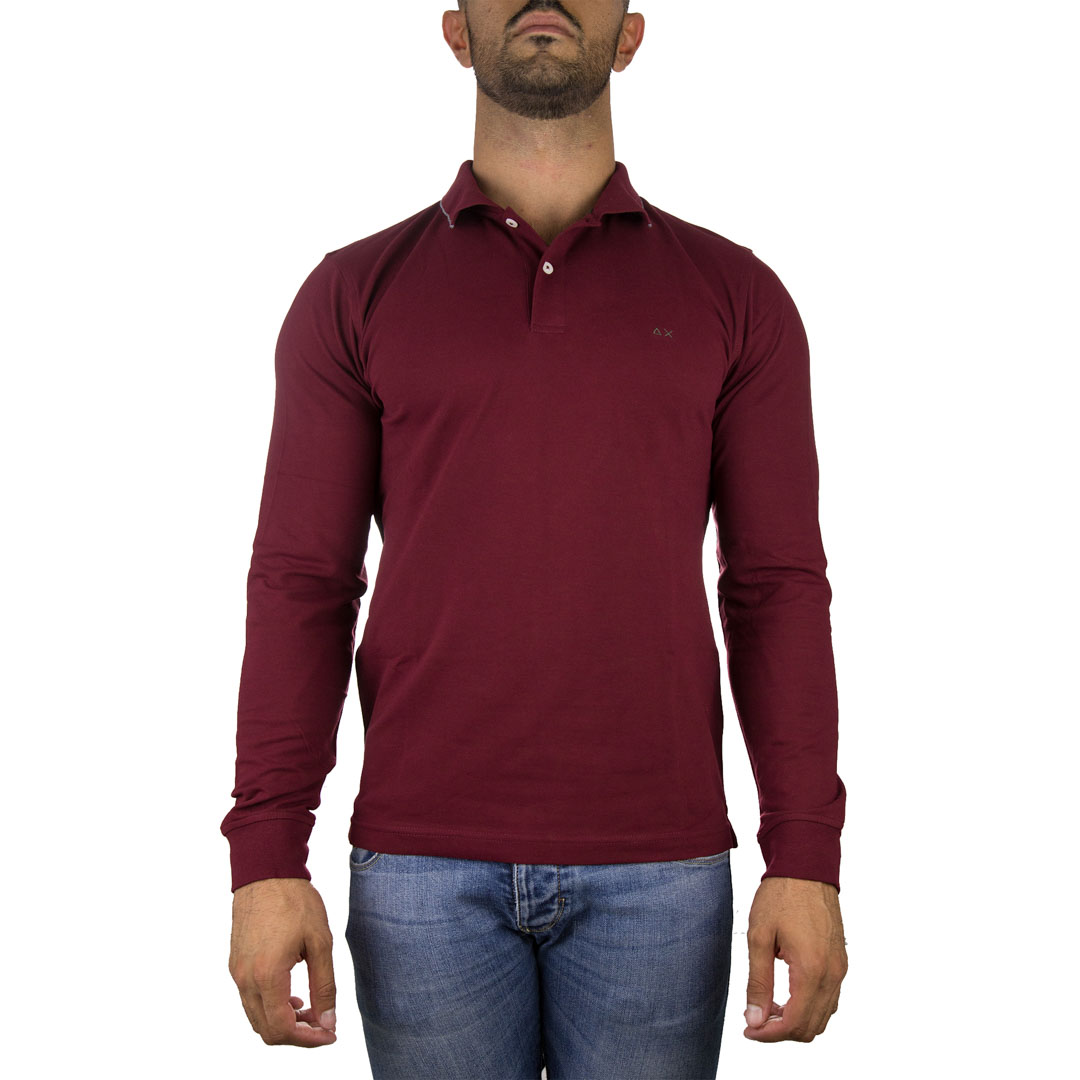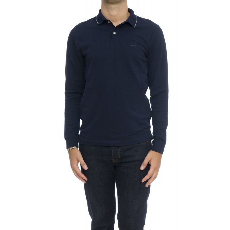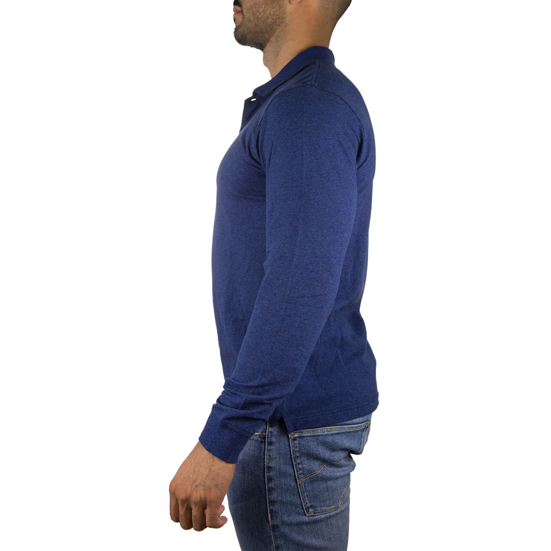 Men's polo shirt with slim-fit cut. Closing with two buttons on the front. Neck decorated with a colored piping in color contrast. Collar and cuffs. Small logo on the chest. Stretch fabric.