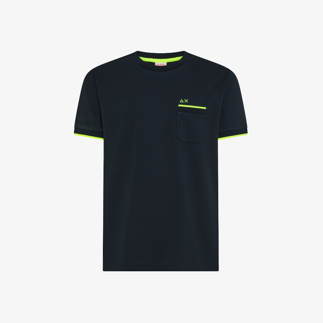 SUN68 transforms the basics of your casual wardrobe into a perfect blend of design, comfort, and iconic details that give your look an unmistakable edge. From everyday wear to leisure time, it's perfect for pairing with trousers and shirts from the collection, offering endless combinations. Cotton piqué T-shirt. Crew neck. Short sleeves with contrasting neon trim. Pocket with contrasting neon trim. SUN68 neon logo embroidered on the chest.