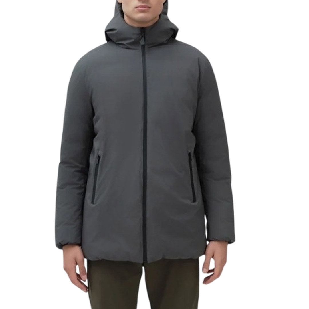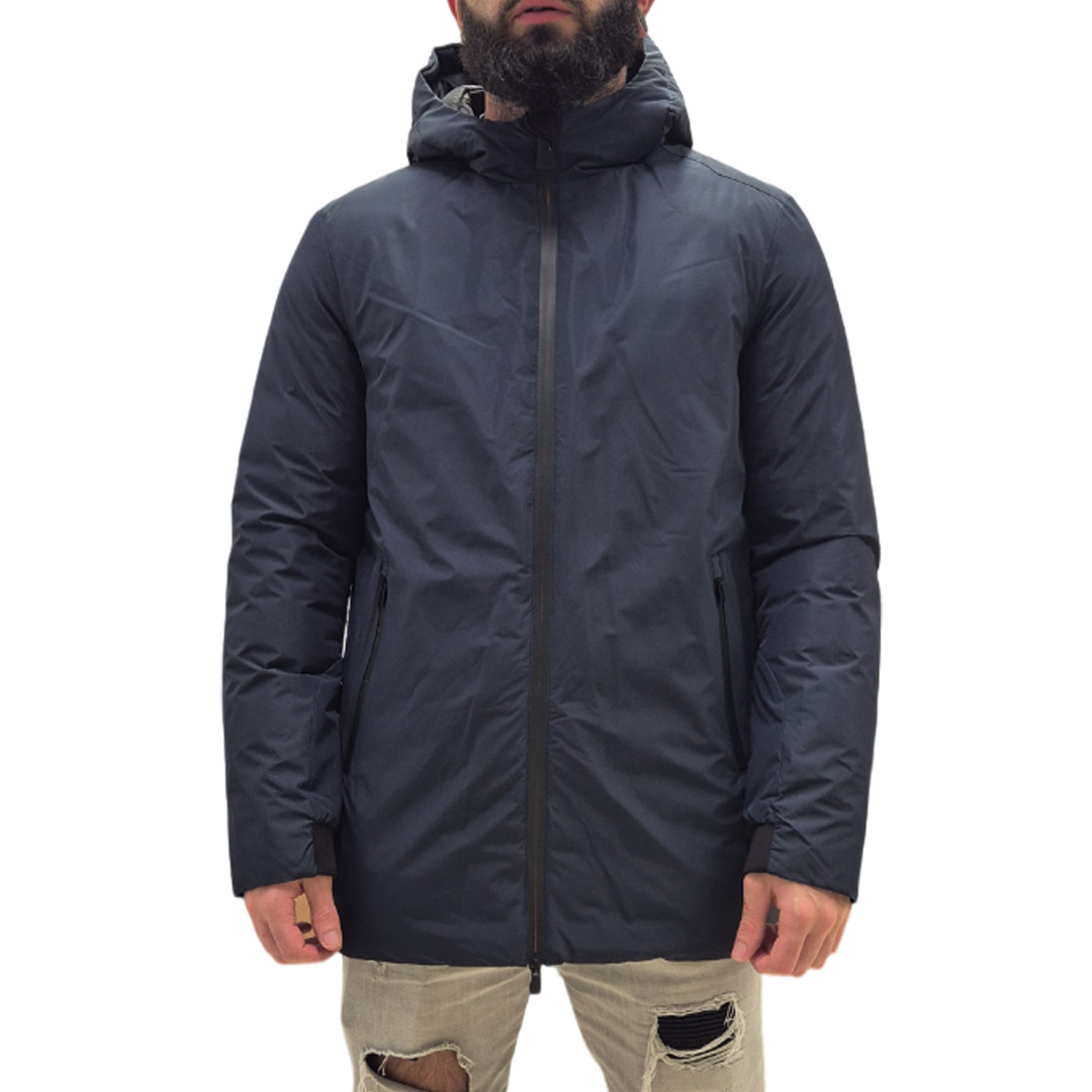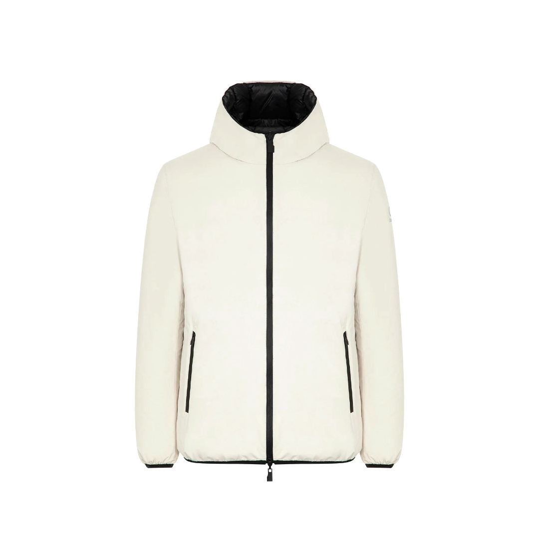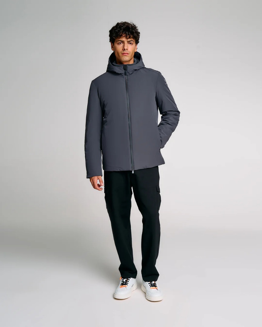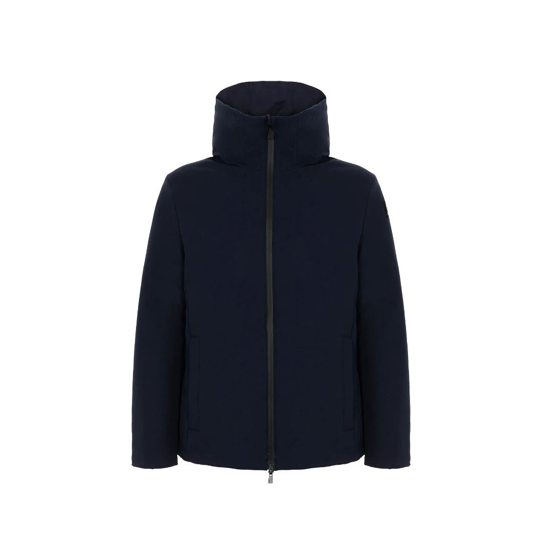 Jacket made of stretch nylon, with SUNS patch on the left arm and fluorescent tag on the side. Waterproof zip closure with double side pocket. Zip collar detail for hood opening. The outer lining has a waterproof and hydrophobic finish, protecting from ultraviolet rays. The model makes simplicity its key feature, giving versatility and comfort on every occasion.