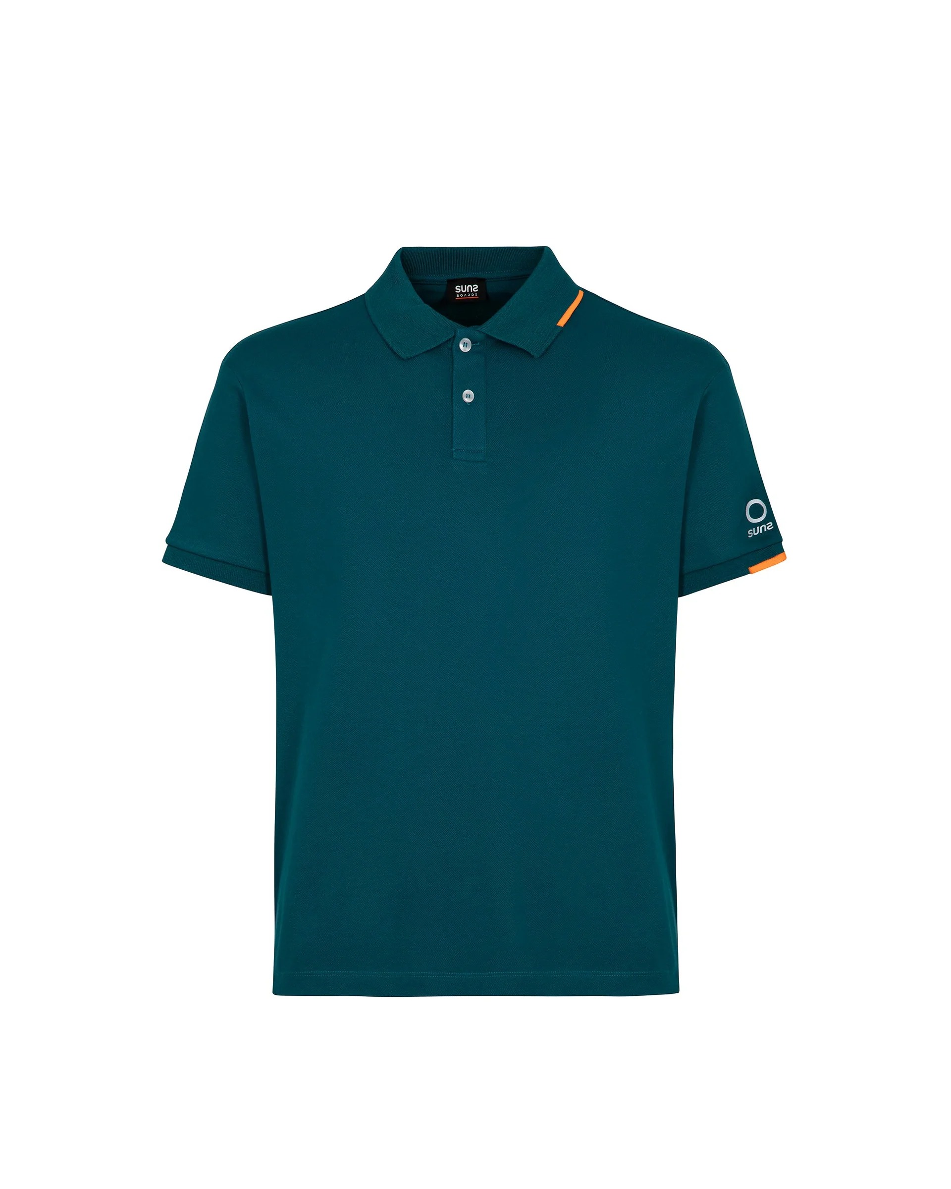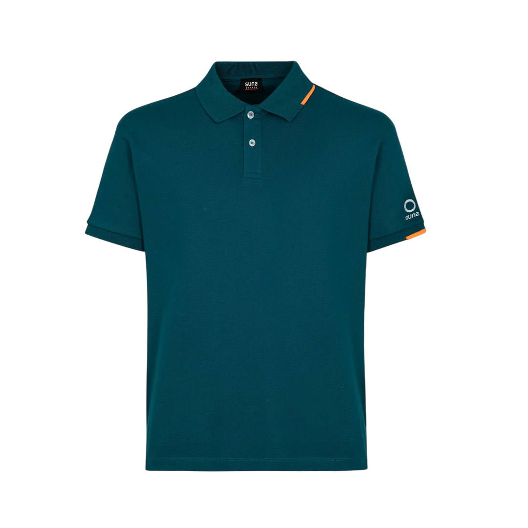 A men's Suns Boards polo shirt designed for dynamic everyday wear, combining comfort and a clean aesthetic. The stretch pique fabric feels comfortable against the skin and allows for natural freedom of movement, while the regular fit ensures the ideal balance between style and functionality. The tone-on-tone ribbed collar with front button closure defines a clean line, enhanced by the technical tag on the sleeve, a distinctive element with a contemporary feel. Main features: Stretch pique fabric: comfortable and suitable for everyday wear. Tone-on-tone ribbed collar: clean and well-structured design. Button closure: practical and functional. Short sleeves with ribbed finish: neat and stable fit. Technical tag on the sleeve: distinctive detail with a sporty feel. Regular fit: ideal for a versatile look.