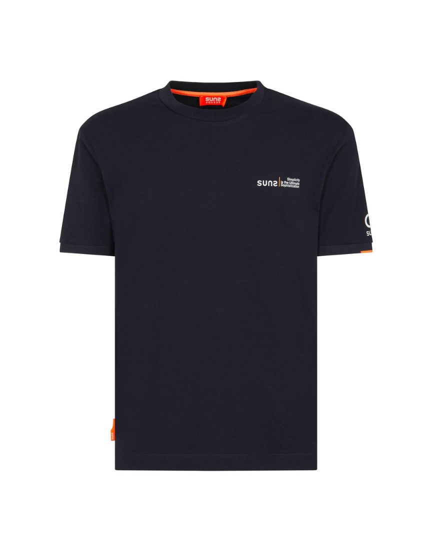 The Paolo Ribtag T-shirt is an icon of minimal and contemporary style. Made of soft cotton, it offers comfort and lightness, perfect for a casual and sophisticated look. The orange detail on the bottom of the left sleeve and the logo fin on the right side highlight the Suns brand identity. The logo is positioned on the left sleeve, while the printed lettering is on the front left side of the t-shirt, adding a distinctive and modern touch. An essential, versatile piece, ideal for any occasion. Main features: Made of soft and comfortable cotton Logo on the left sleeve Printed lettering on the front left side Fluorescent orange detail on the bottom of the left sleeve Suns logo fin on the right side