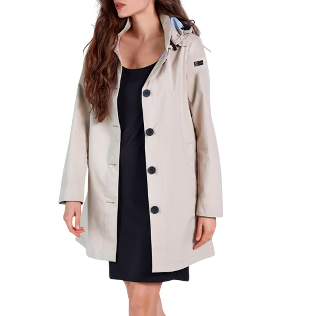 The SUNS Crocetta Conf Women's Trench Coat is an essential piece to face the season with elegance and functionality. Made of water-repellent technical fabric, it offers protection from the elements without sacrificing style. The classic design with button closure and removable hood makes it extremely versatile, perfect for both casual and more formal looks Water-repellent fabric for protection from rain and wind Removable hood for a customizable look Front closure with buttons for a touch of refinement Side pockets for practicality and functionality Comfortable fit ideal for wearing over any outfit Clean and modern line for a timeless style