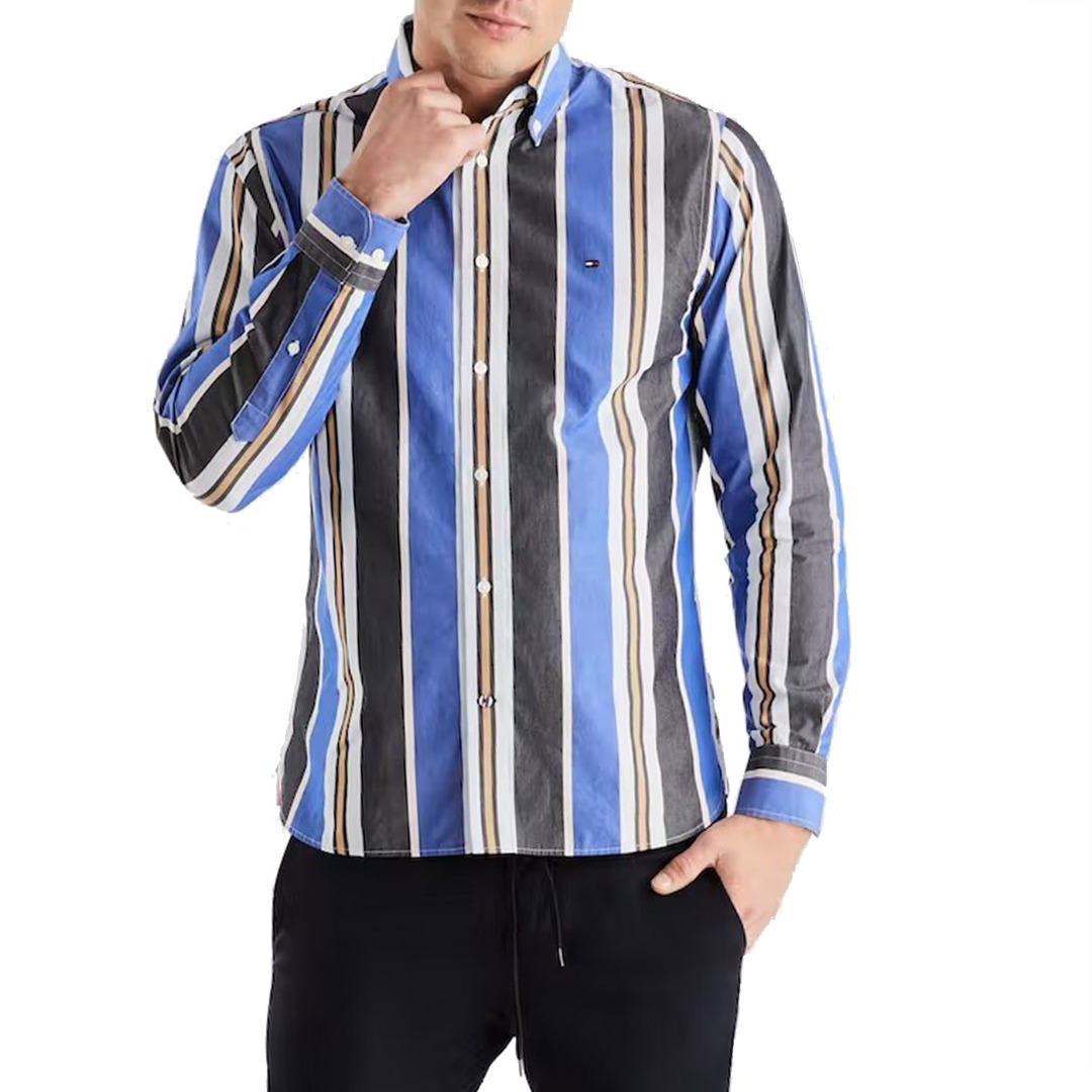 Give a touch of color to your elegant outfits with the all over striped shirt, made of breathable pure cotton with a classic regular cut. • Pure cotton poplin • All over multicolored stripes • Button down collar • Rounded cuffs with two buttons • Tommy Hilfiger branding • Tommy Hilfiger flag embroidered on chest Regular fit