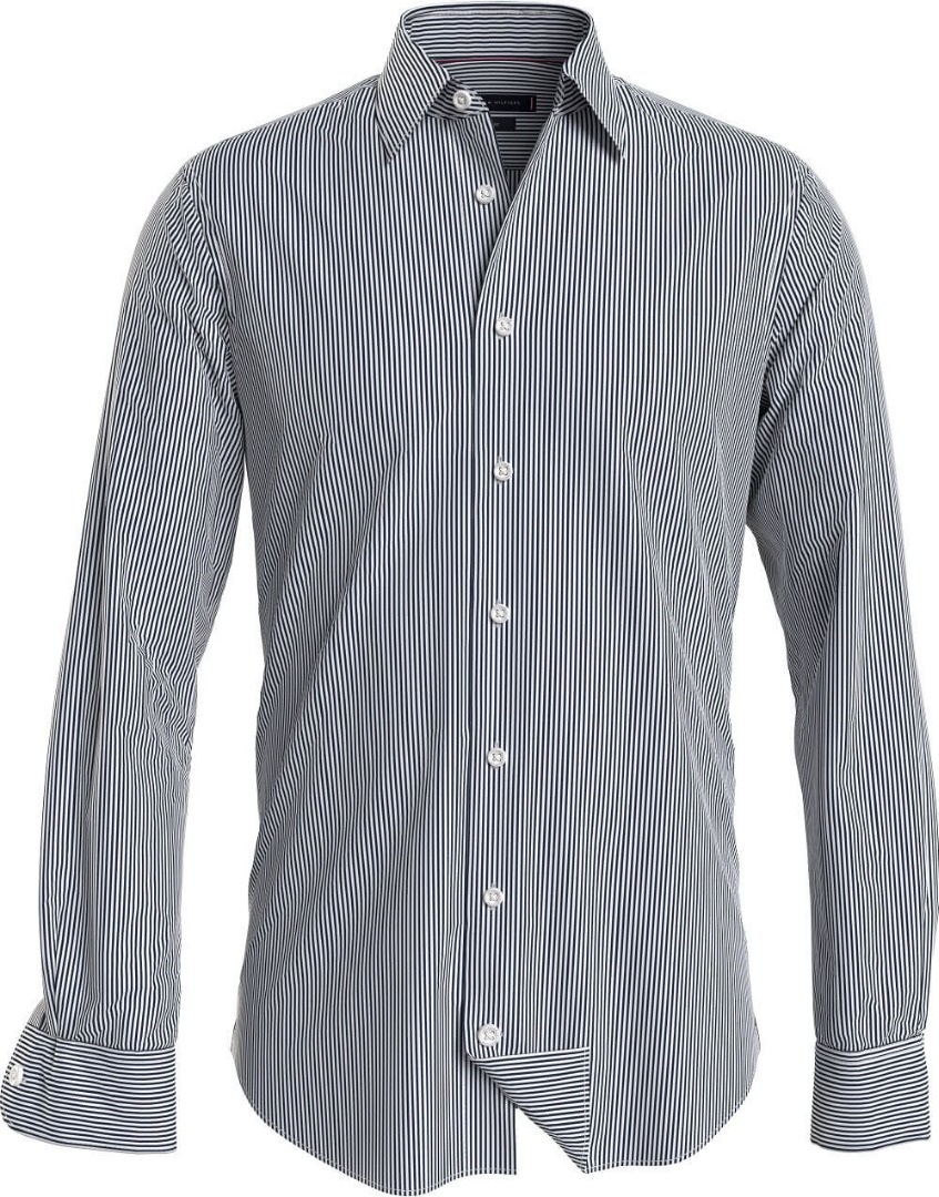 The Smart Casual collection combines soft materials in neutral shades with essential lines and finishes, giving life to refined and elegant garments, suitable both for days in the office and for an informal aperitif with friends. The elegant shirt, made of stretch organic cotton blend poplin, features Tommy Hilfiger Flex technology for a slim and very comfortable fit. • Stretch organic cotton blend poplin • Flex Technology • All-over vertical stripes • Spread collar • Beveled cuffs with two buttons • Tommy Hilfiger branding • Tommy Hilfiger flag embroidered on the sleeve • Slim fit