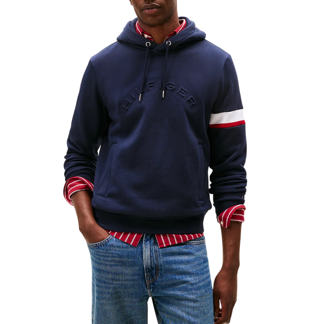 This regular-fit sweatshirt is the ideal piece for those seeking comfort and style. Crafted in classic white, it features the Tommy Hilfiger logo embroidered on the chest in red, blue, and gold, giving it a distinctive and sophisticated touch. The adjustable drawstring hood and front pocket make it perfect for a casual and functional look.