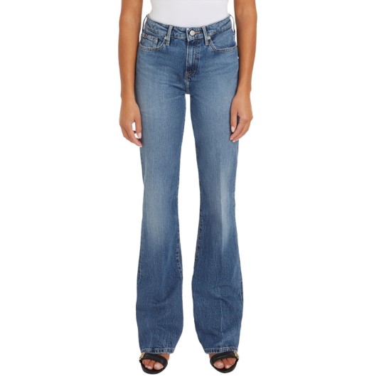 Tommy Hilfiger high-waisted flared skinny jeans. Made from washed denim. Stretchy, fitted material. - Part of the product is made from recycled cotton. - Slightly fitted jeans at the hips. - The full-length fitted leg accentuates the natural line of the figure. - High-waisted model with button and zip fastening. - Three side welt pockets at the front. - Two side welt pockets at the bottom.
