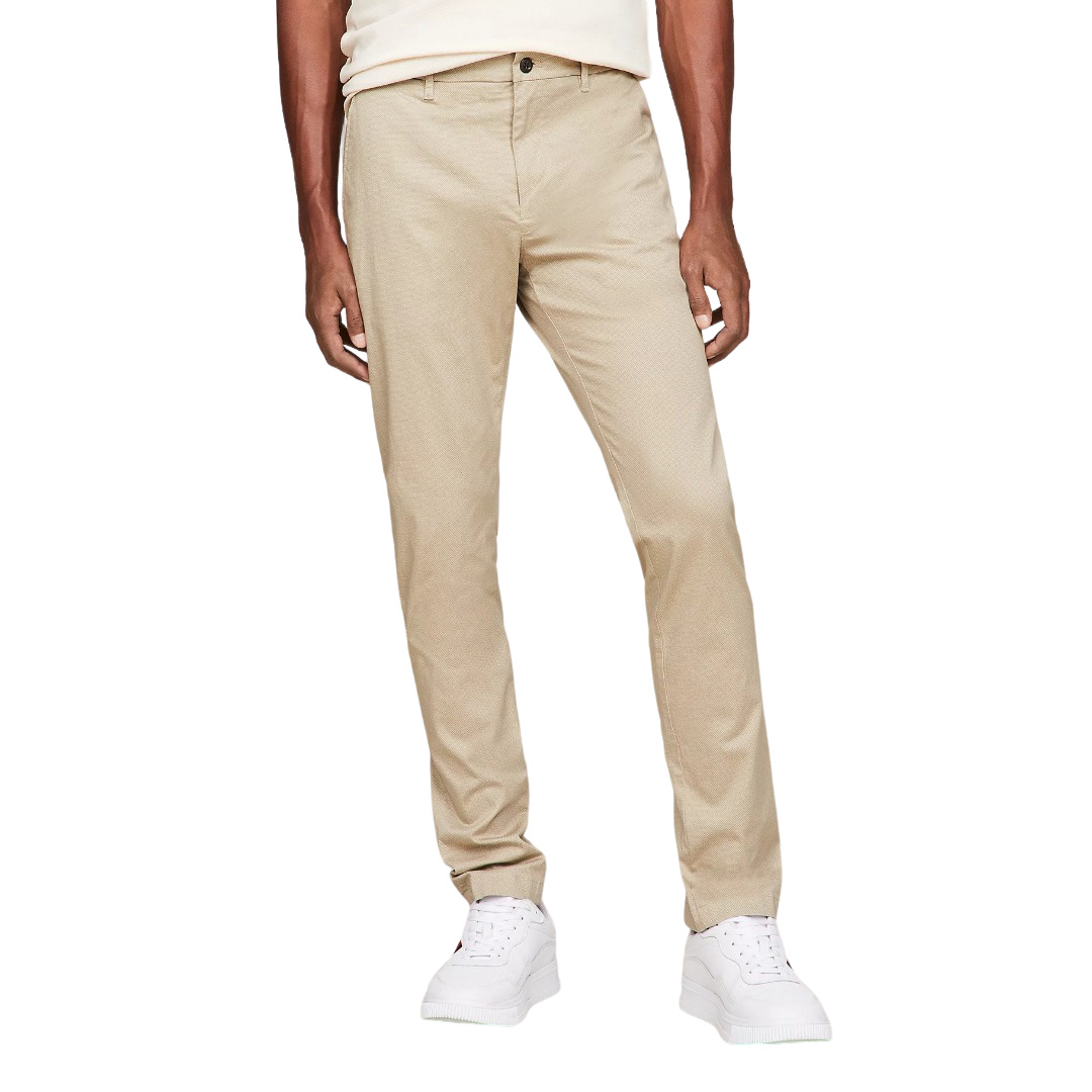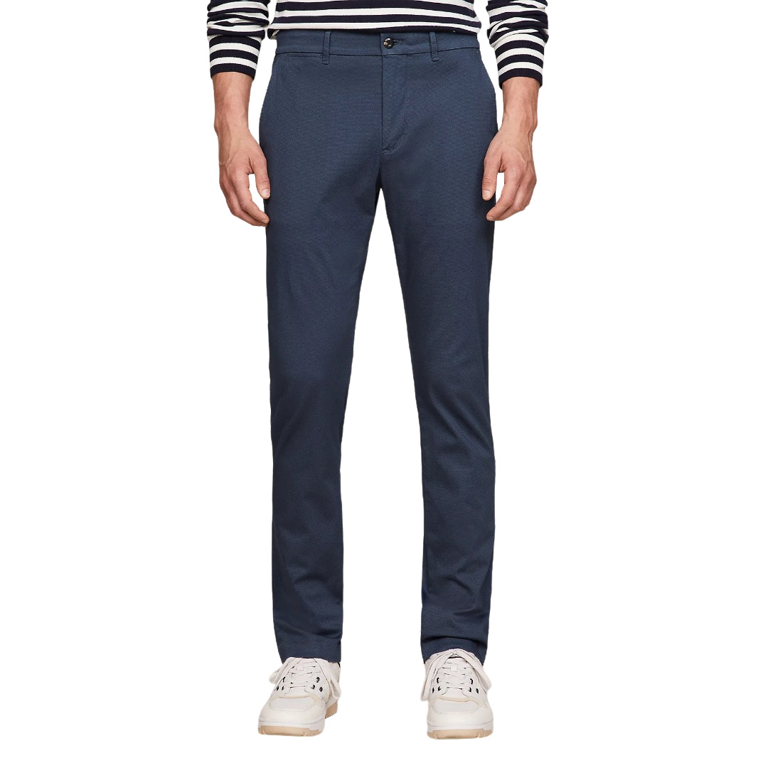 The slim fit chino trousers, made of structured and flexible stretch cotton, are the perfect garment for the in-between seasons • Stretch cotton • Produced in collaboration with Better Cotton Initiative • Two open corner pockets on the sides • Two welt pockets with button on the back • Tommy Hilfiger branding • Tommy Hilfiger flag embroidered on back • Straight fit • Slim fit
