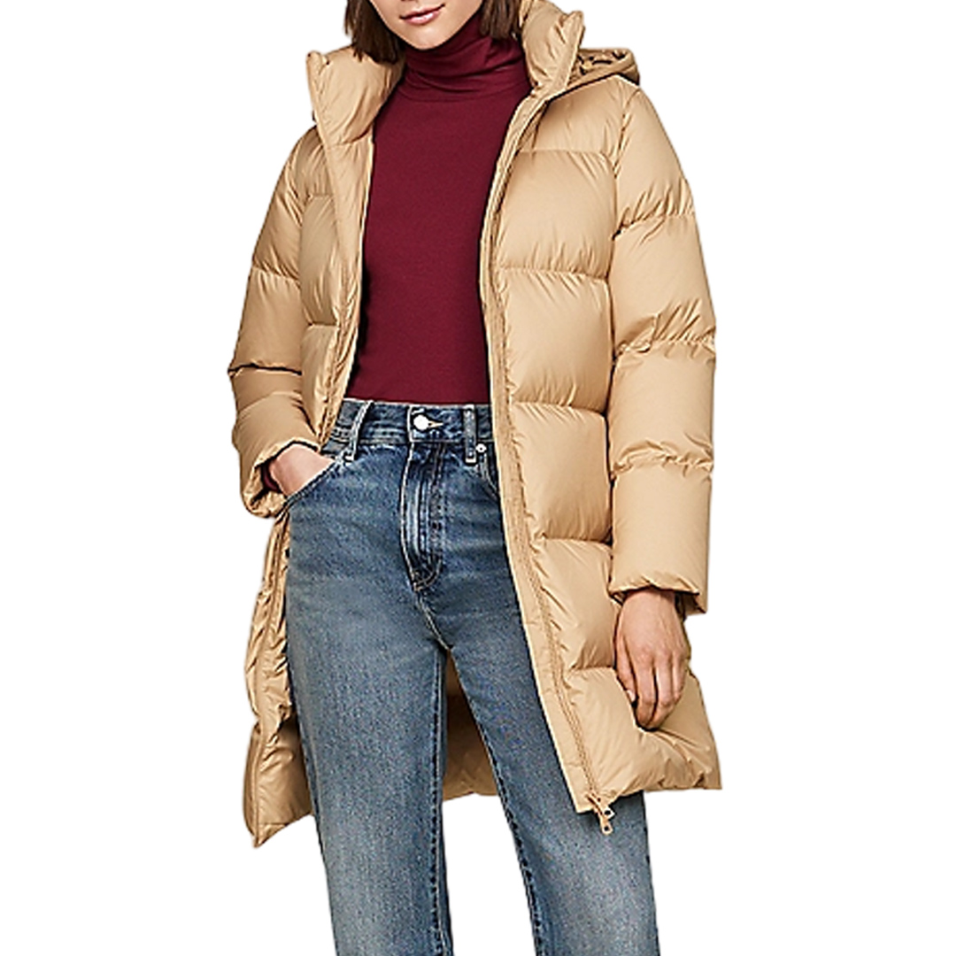 The long down jacket is specially designed to protect you from the elements, thanks to the enveloping stand-up collar and hood with drawstrings • Down padding • Water-repellent • Thermal insulation • Non-removable hood with drawstrings • Stand-up collar • Full zip • Two side pockets with snap buttons • Tommy Hilfiger logo patch stamped on the sleeve • Tommy Hilfiger branding