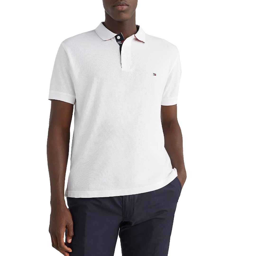 The contrasting three-button placket on the front and the embroidered flag give this classic organic cotton blend polo a Tommy Hilfiger touch. • Organic cotton blend piquet • Polo collar • Front button placket with three buttons • Contrasting signature detail under the collar • Front placket with contrasting interior • Tommy Hilfiger logo inside the front of the placket • Tommy Hilfiger branding • Tommy flag Hilfiger embroidered on the chest • Regular fit