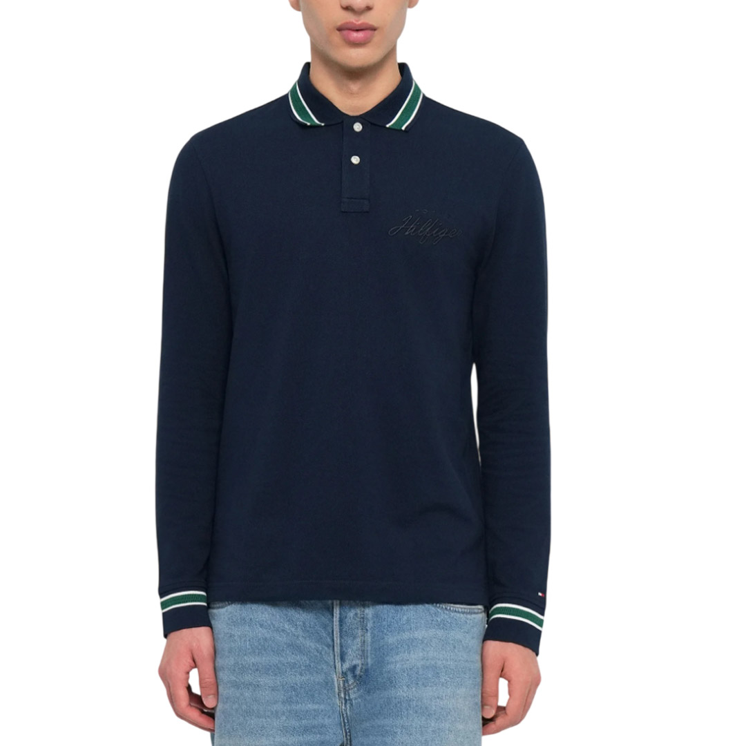 The long-sleeved polo shirt stands out for its refined tone-on-tone embroidered logo and contrasting textured stripes on the collar and cuffs. Main features • Stretch cotton piqué • Polo collar and cuffs with contrasting textured stripes • Two-button closure • Signature tape inside the collar • Tone-on-tone Tommy Hilfiger logo embroidered on the chest • Tommy Hilfiger branding • Tommy Hilfiger flag embroidered on the sleeve Style and fit • Regular fit • Long sleeves