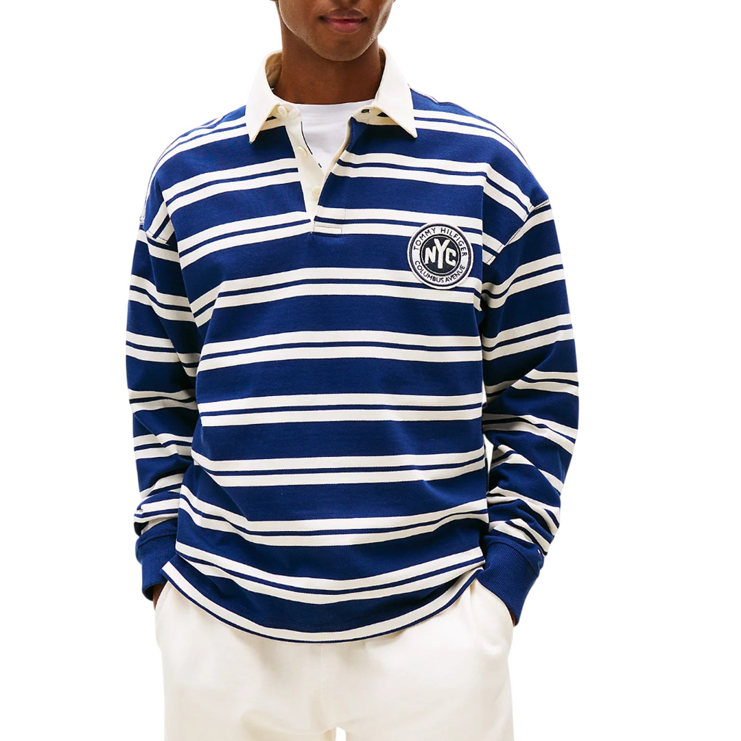 The relaxed-fit rugby polo is crafted from pure cotton with a striped design for a striking sporty style. Key features: • Pure cotton • All-over horizontal stripes • Rugby-style collar • Concealed button placket • Ribbed cuffs • TH crest applique on the chest • Tommy Hilfiger branding